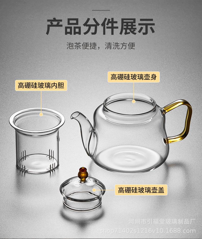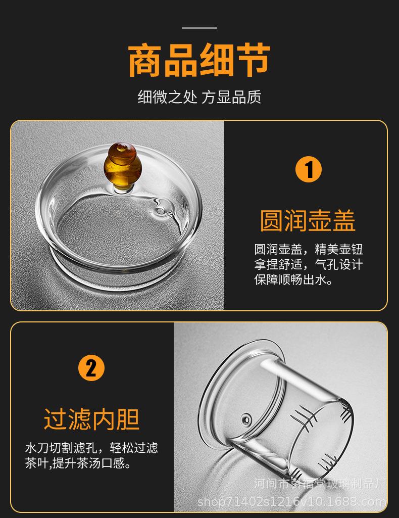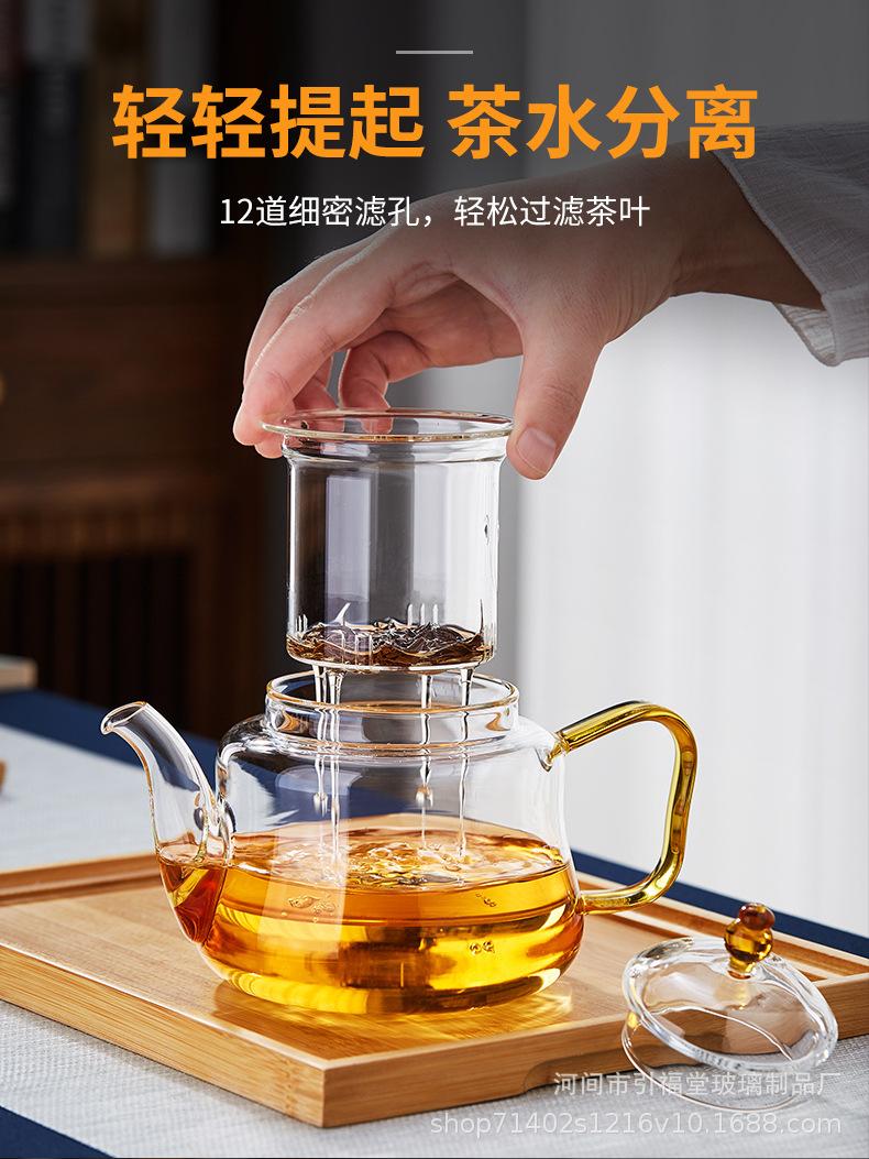 Tetera de vidrio, juego de té de vidrio de borosilicato, tetera engrosada con pantalla de filtro, tetera de vidrio con separación de té para el hogar