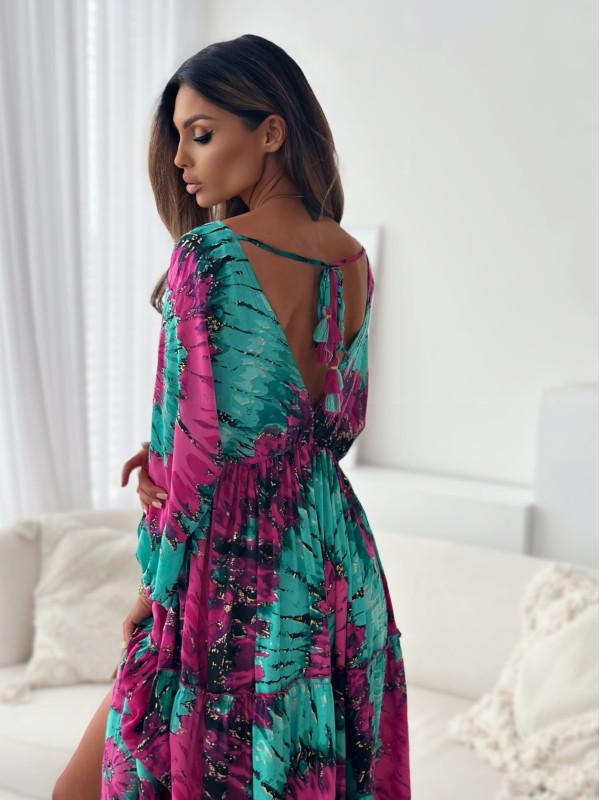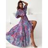 2024 Amazon Estación Independiente en stock Nuevo vestido de cintura estampada con escote profundo en V