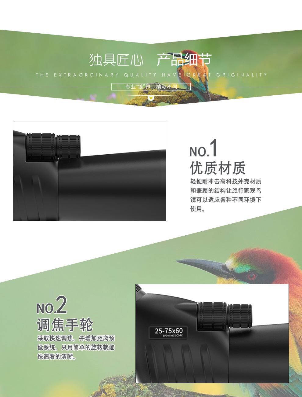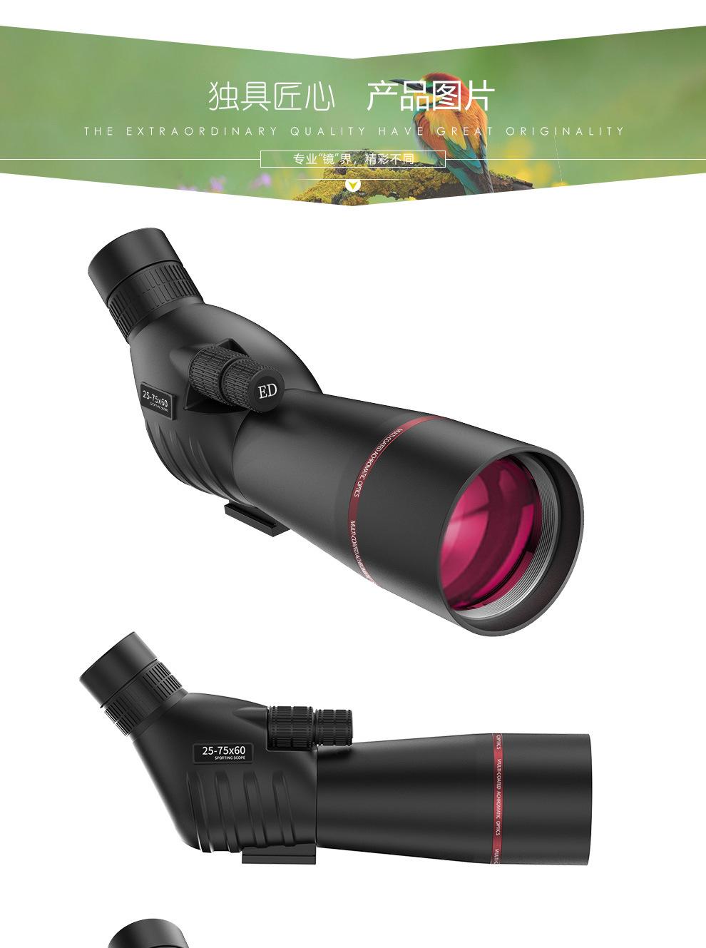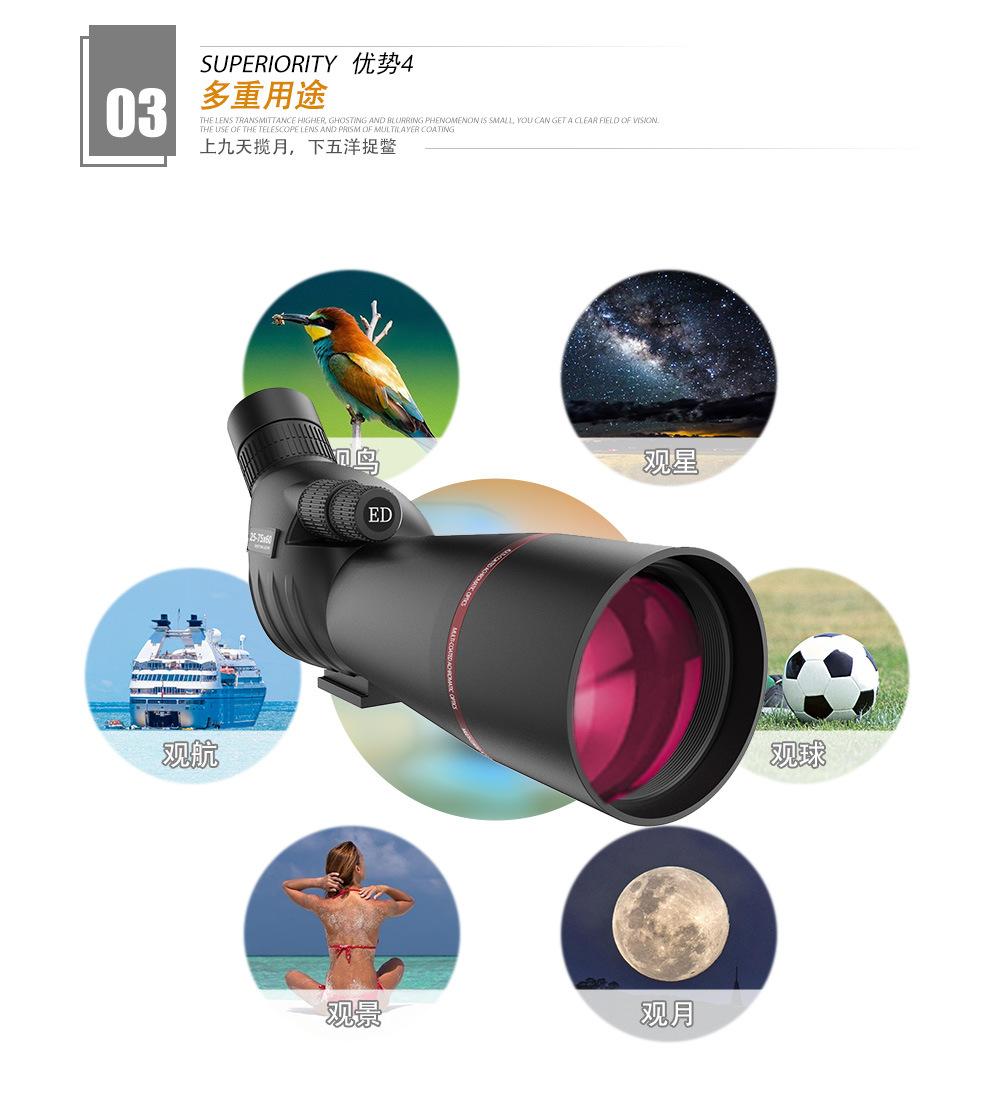 Telescopio monocular 25-75X60 de alta potencia y alta definición, visión nocturna de bajo nivel de luz, vista de la luna, espejo para observación de aves