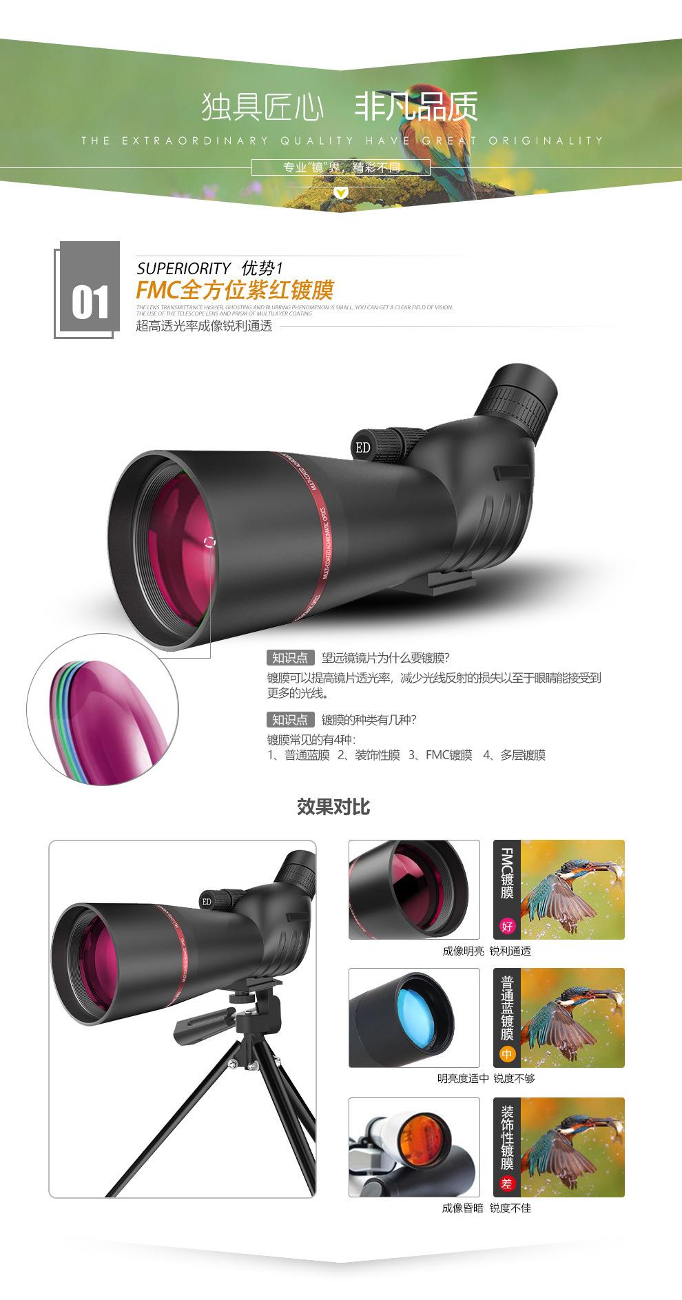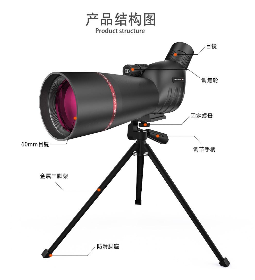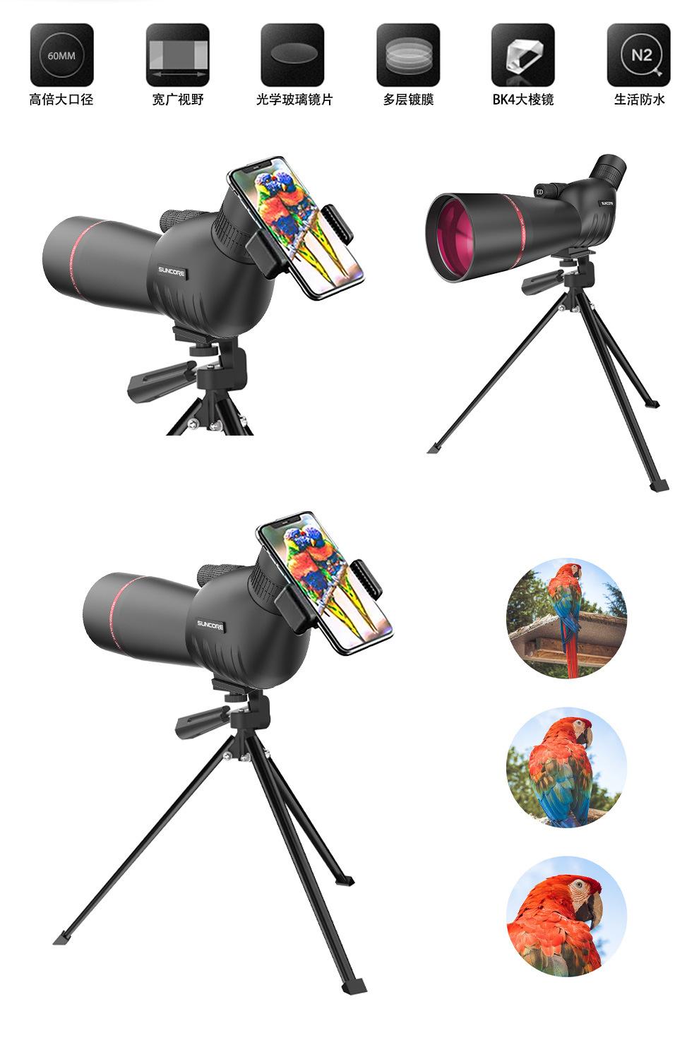 Telescopio monocular 25-75X60 de alta potencia y alta definición, visión nocturna de bajo nivel de luz, vista de la luna, espejo para observación de aves