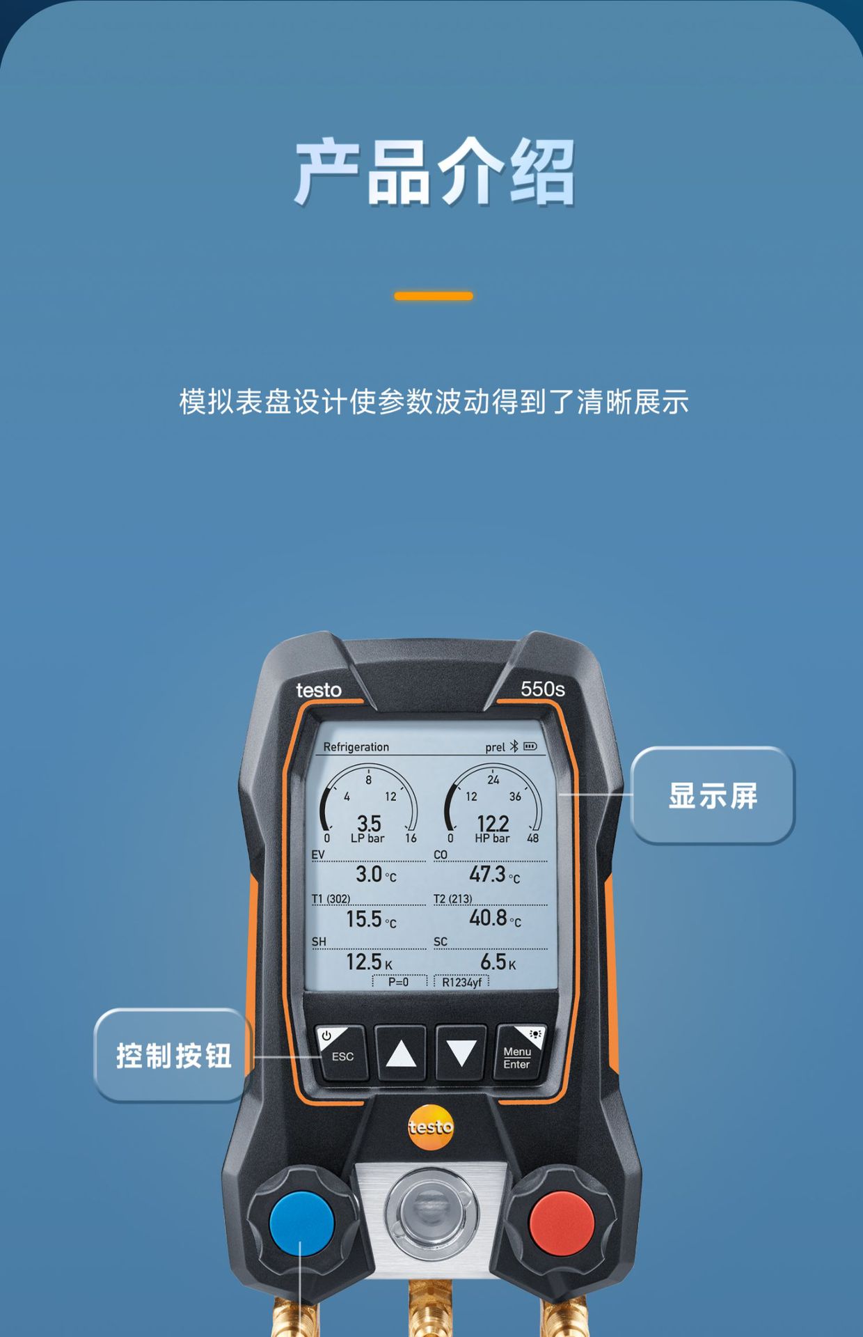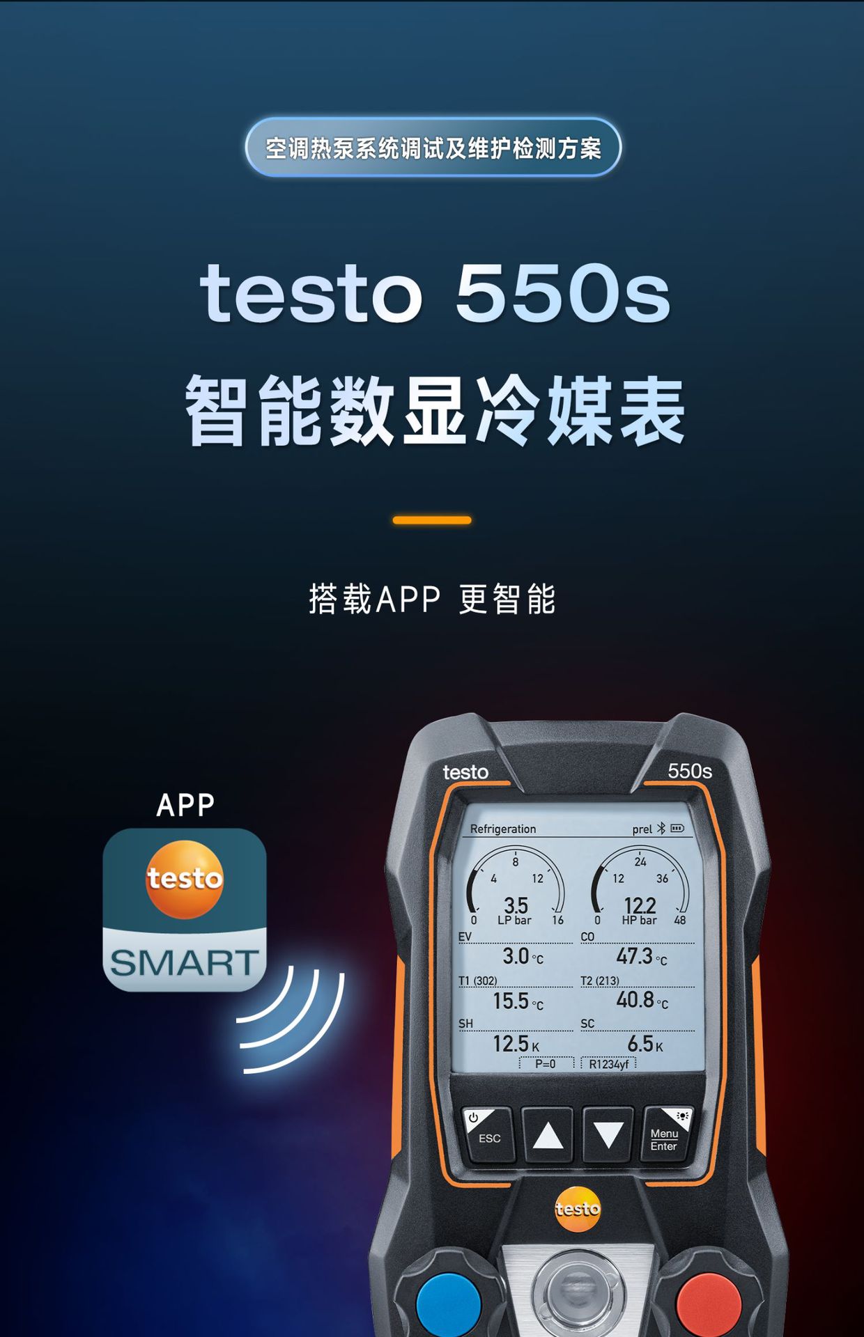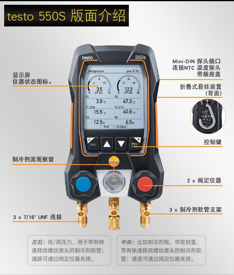 Testo550s smart set [pressure accuracy: ±0.5% temperature accuracy ± 0.5℃ Built-in more than 90 types of refrigeration] free three-color tube