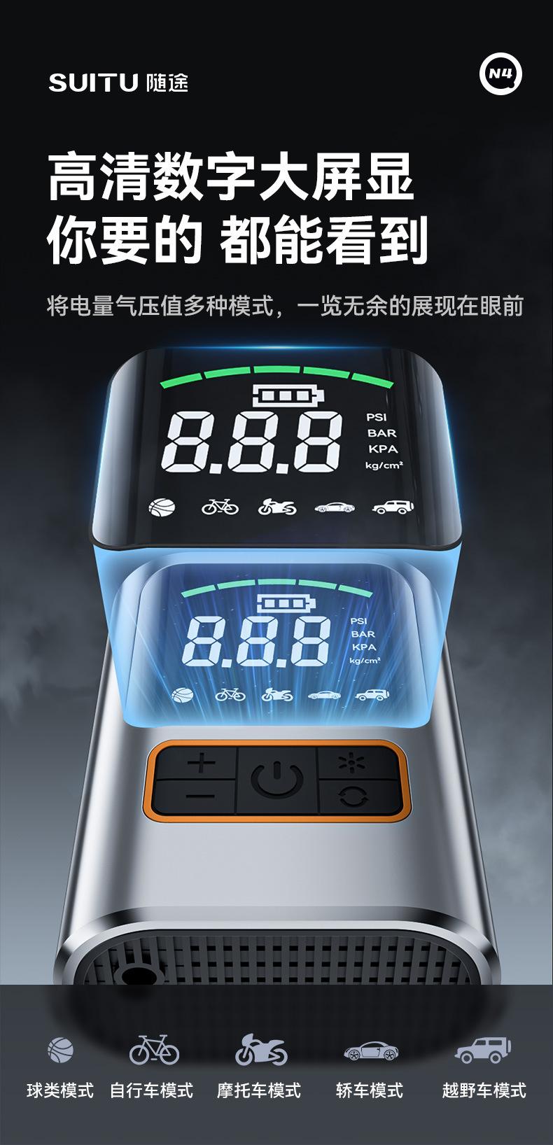 1.4 El producto tiene un indicador de nivel de batería y una pantalla digital de presión para facilitar la operación. La presión de aire se puede preestablecer y el producto se apagará automáticamente.