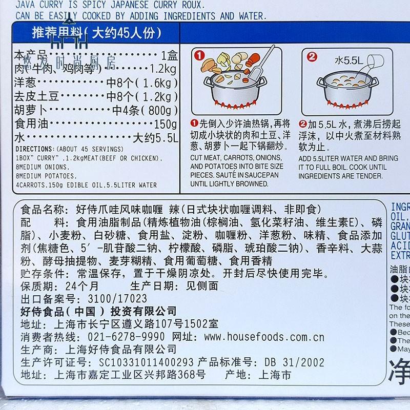 Haoshi Curry Java japonés picante 970 g Curry instantáneo Pescado Huevo Carne Pollo Arroz Condimento de ajo