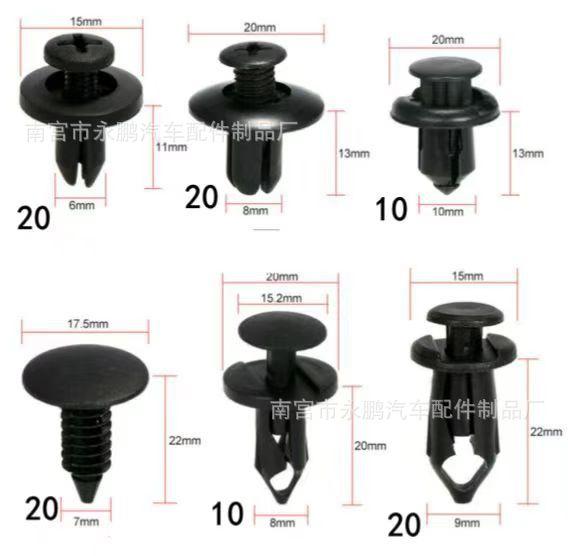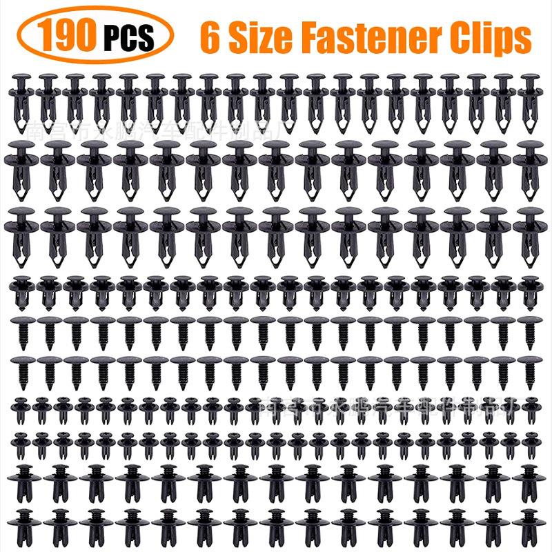 190 piezas de sujetadores de coche de 6 tamaños transfronterizos, remache ABS, clip de varilla de empuje, guardabarros, parachoques, tarjeta de plástico