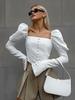 Camisa de manga larga con cuello en V y lazo para mujer, primavera y otoño, nuevo diseño de estilo suave, manga abullonada, top dulce, tendencia