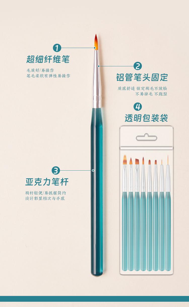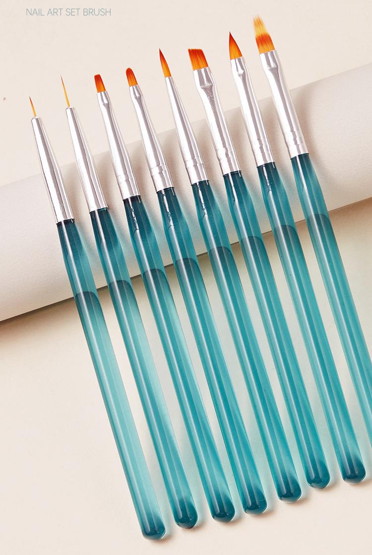 Juego de 8 Pinceles para Arte de Uñas Azul Océano Pincel con Cordón para Pintar Pincel para Degradado de Tinte Pluma para Barrer Pluma para Terapia de Luz Pluma para Tallado de Cristal
