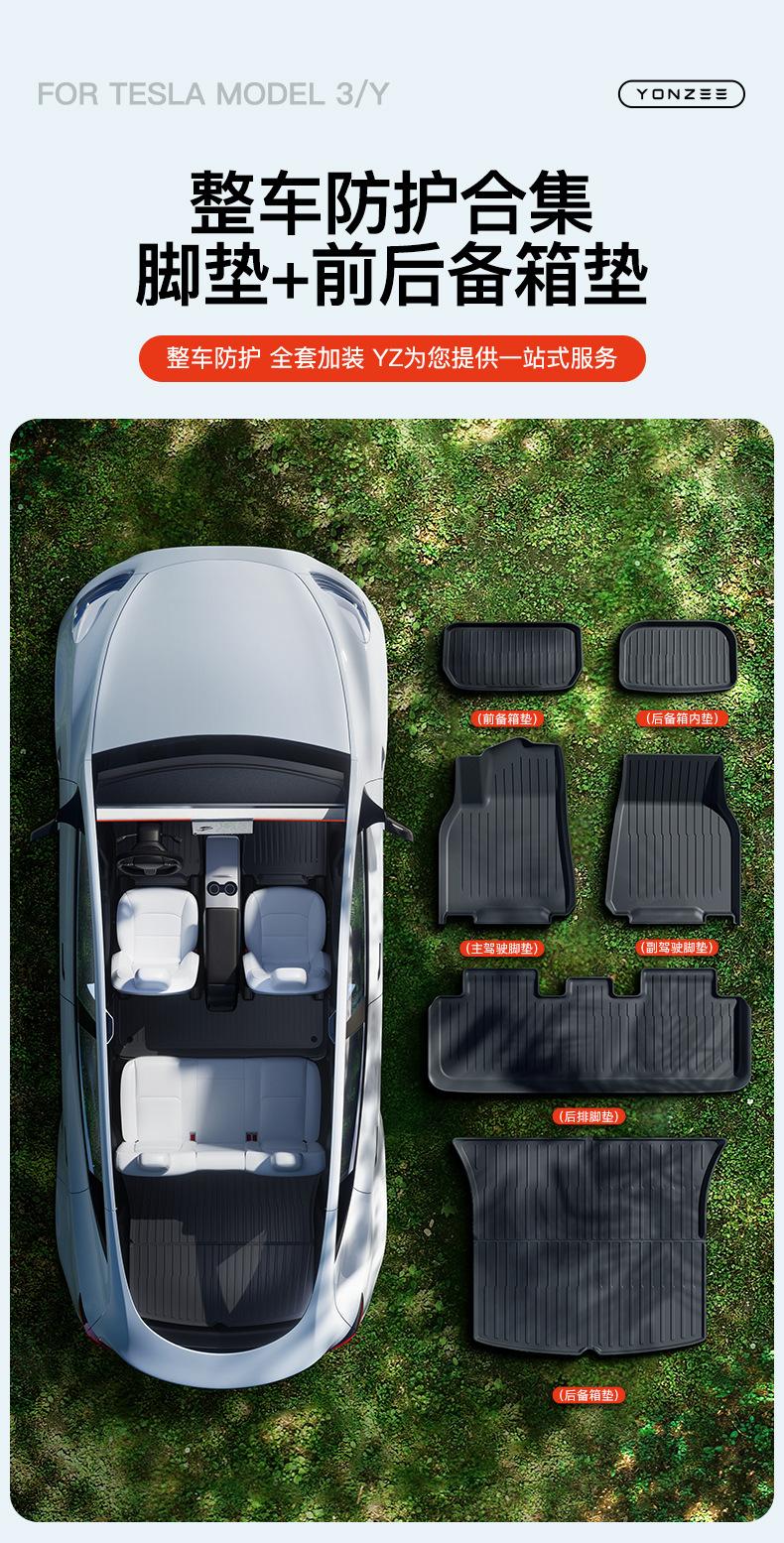 Left-hand drive - old model y all-weather tpe floor mats + menis carpet surface [clip version]