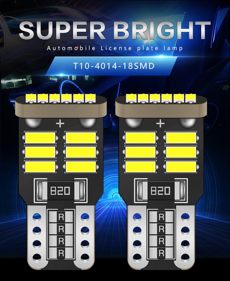 Luz LED de alta potencia para coche, luz de matrícula decodificadora T10-4014-18smd, luz de lectura superbrillante para coche, 12 V