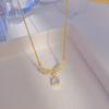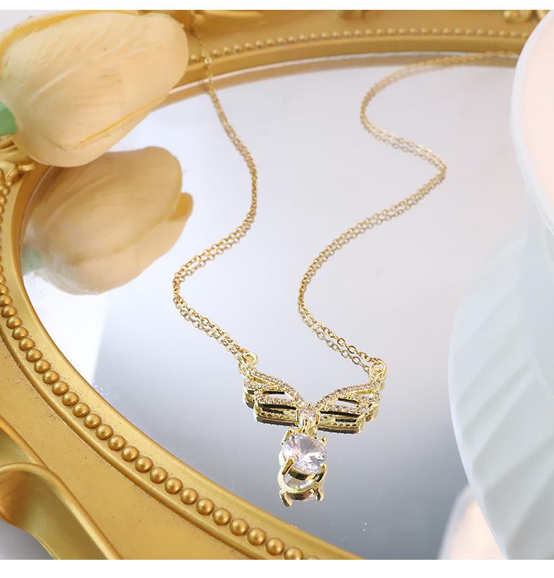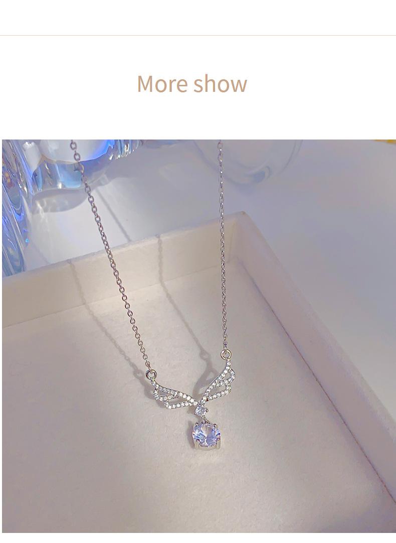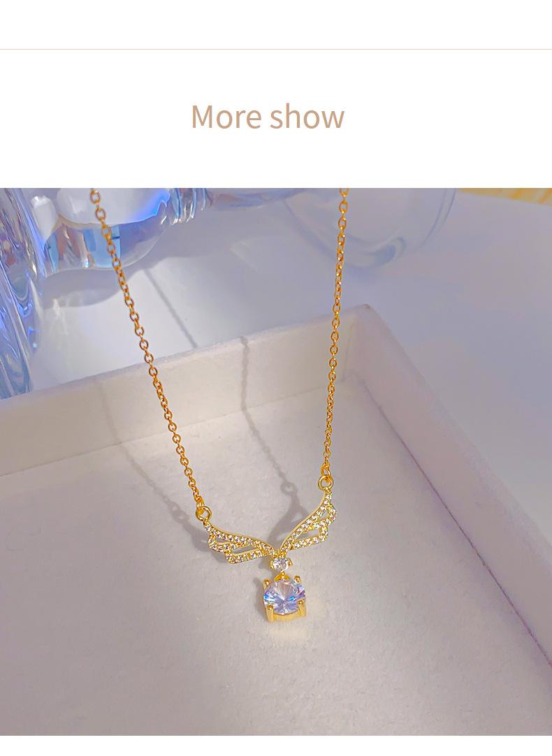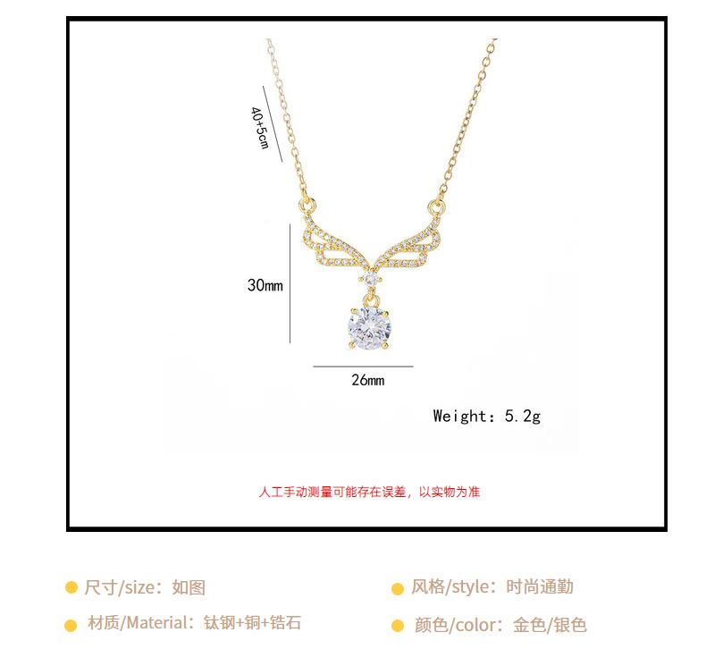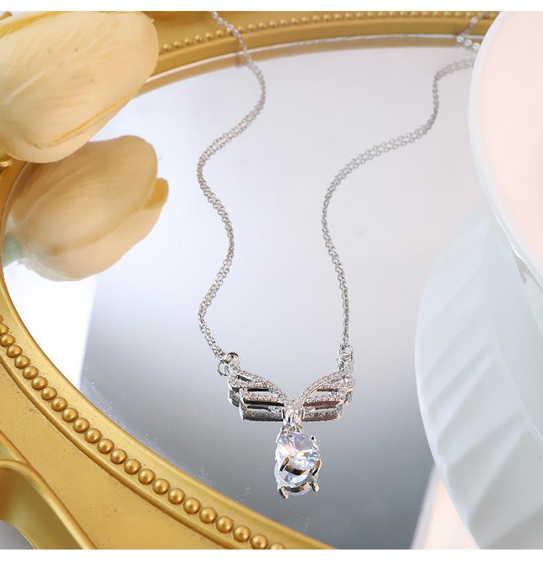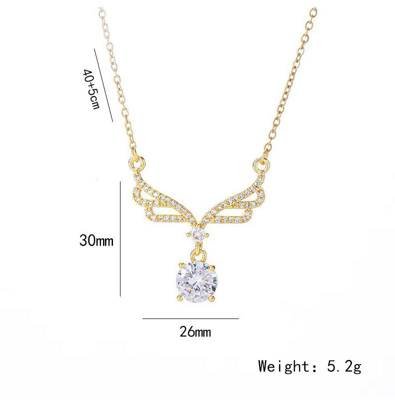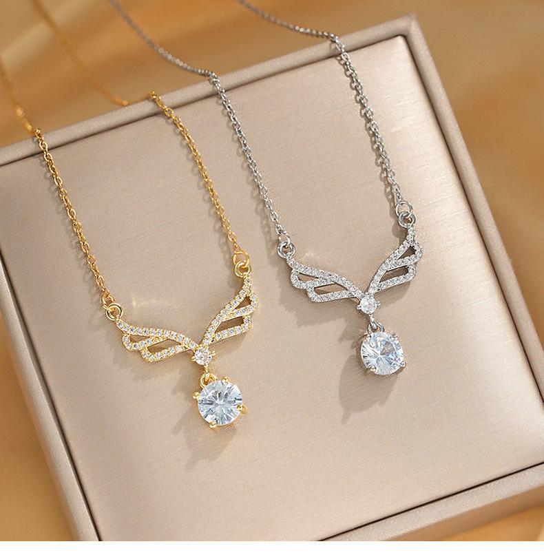 Collar con colgante de alas grandes de circonita incrustada de lujo dorado, borla de gota de agua, cadena de clavícula sencilla de acero de titanio que combina con todo, venta al por mayor