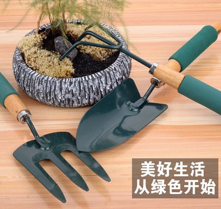 Herramienta para plantar flores, mango de esponja, juego de tres piezas para jardinería, pala grande para excavar tierra, maceta pastoral para plantar flores, rastrillo para tierra suelta