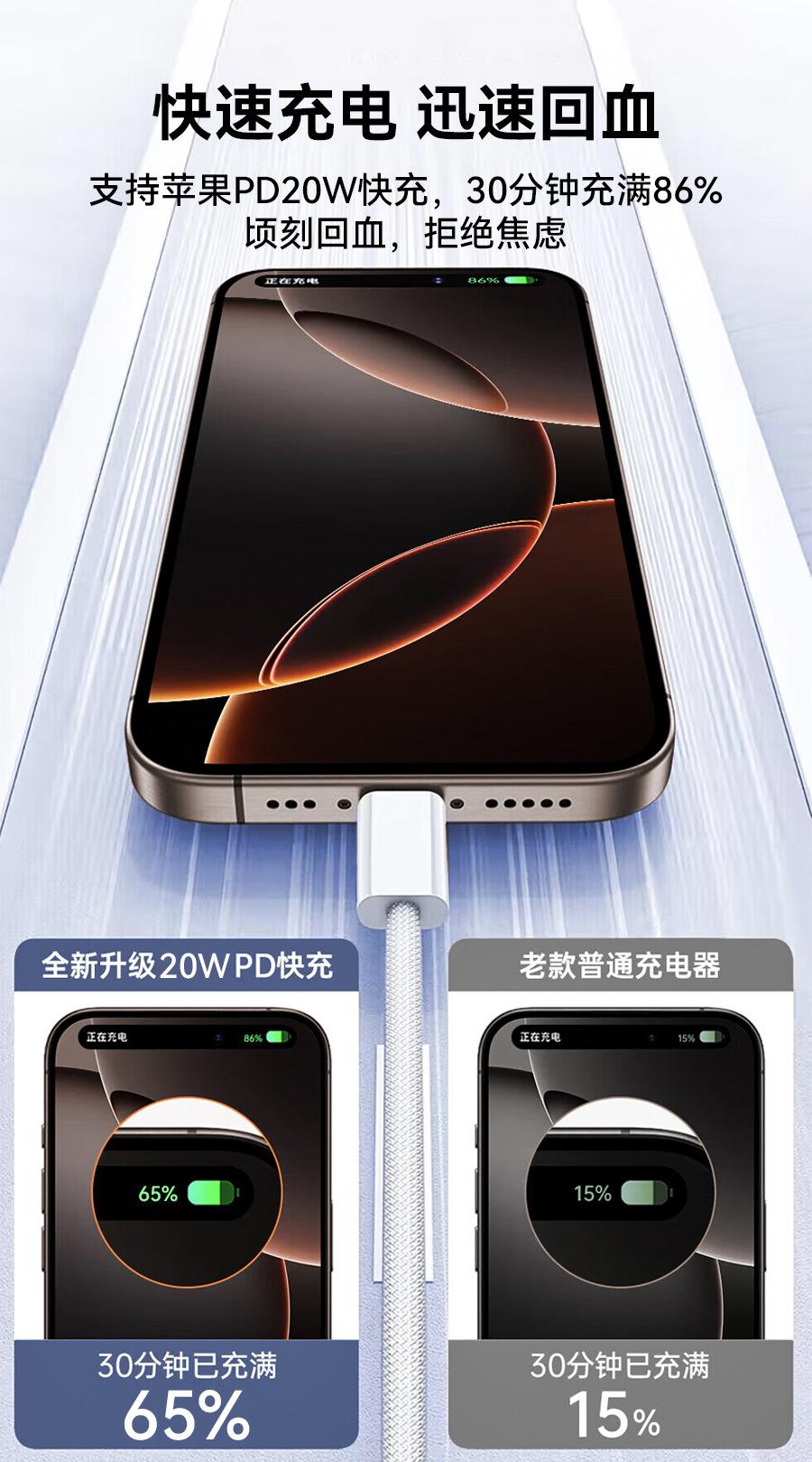 Carga rápida con certificación 3C para cargador Apple 15/16 compatible con cable de datos para iPhone 15 Pro Max