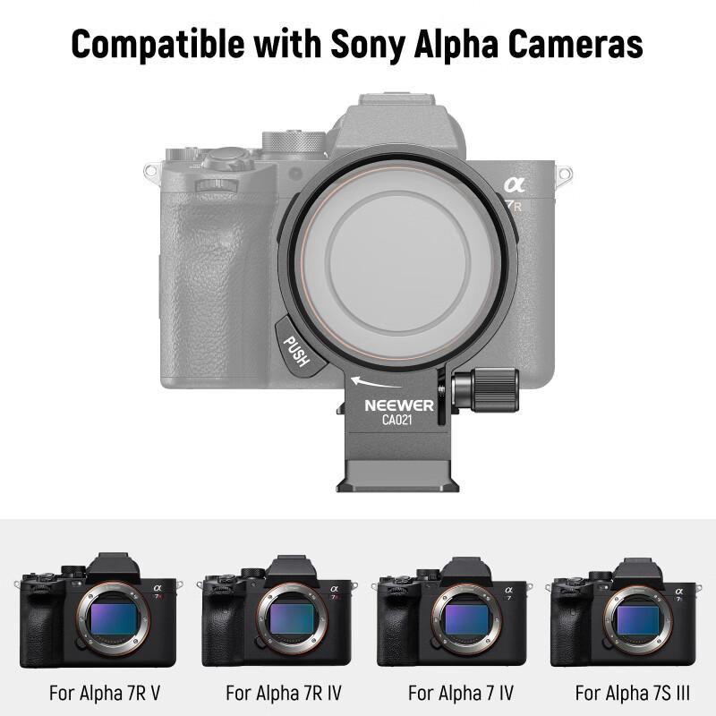 Placa de liberación rápida Arca Newell CA021 adecuada para la serie Sony A7, disparo horizontal y vertical, anillo adaptador de soporte giratorio para lente