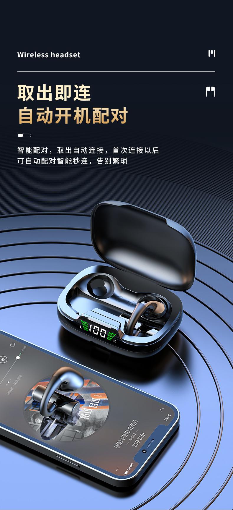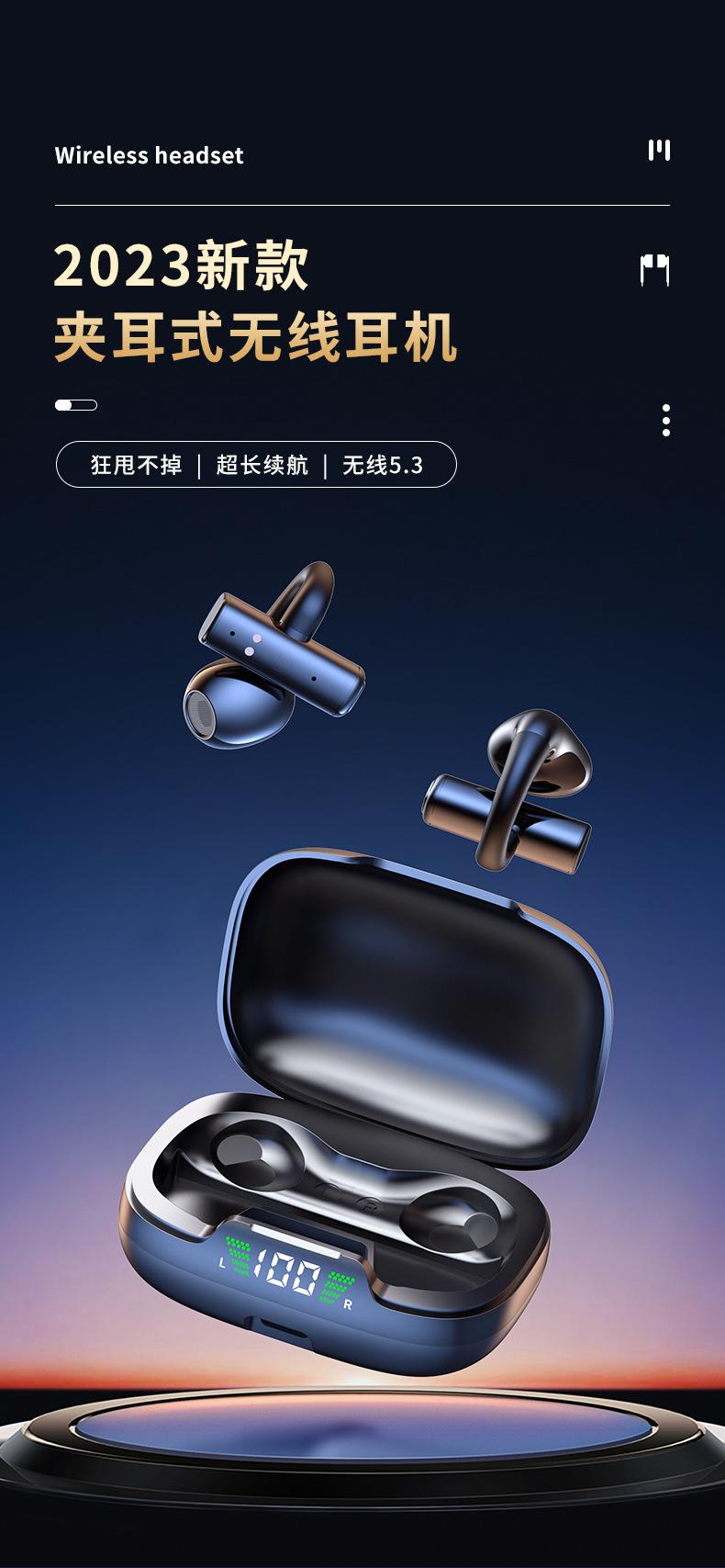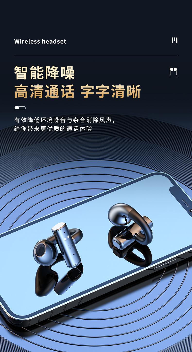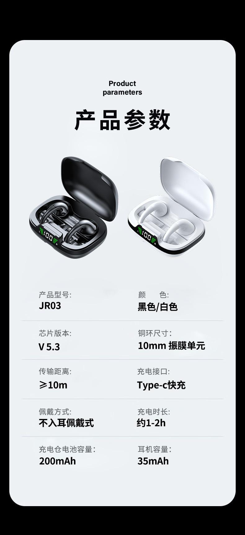 Auriculares inalámbricos Bluetooth JR03 TWS con clip, tecnología negra, deportivos, cómodos de llevar.