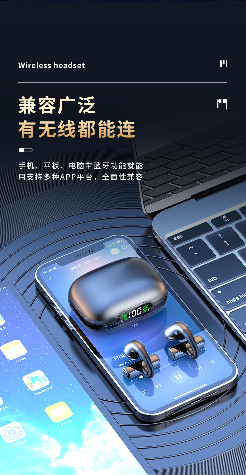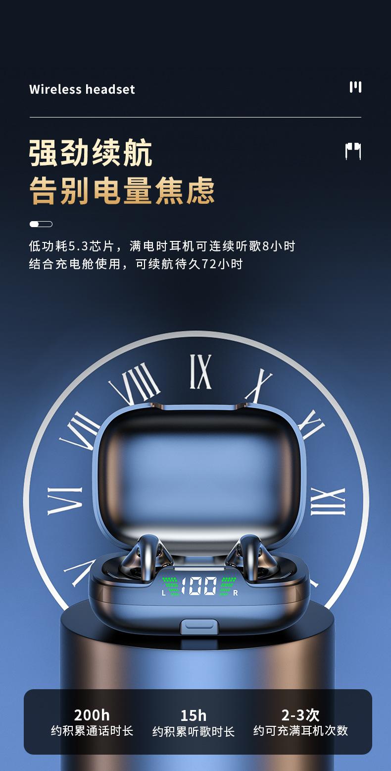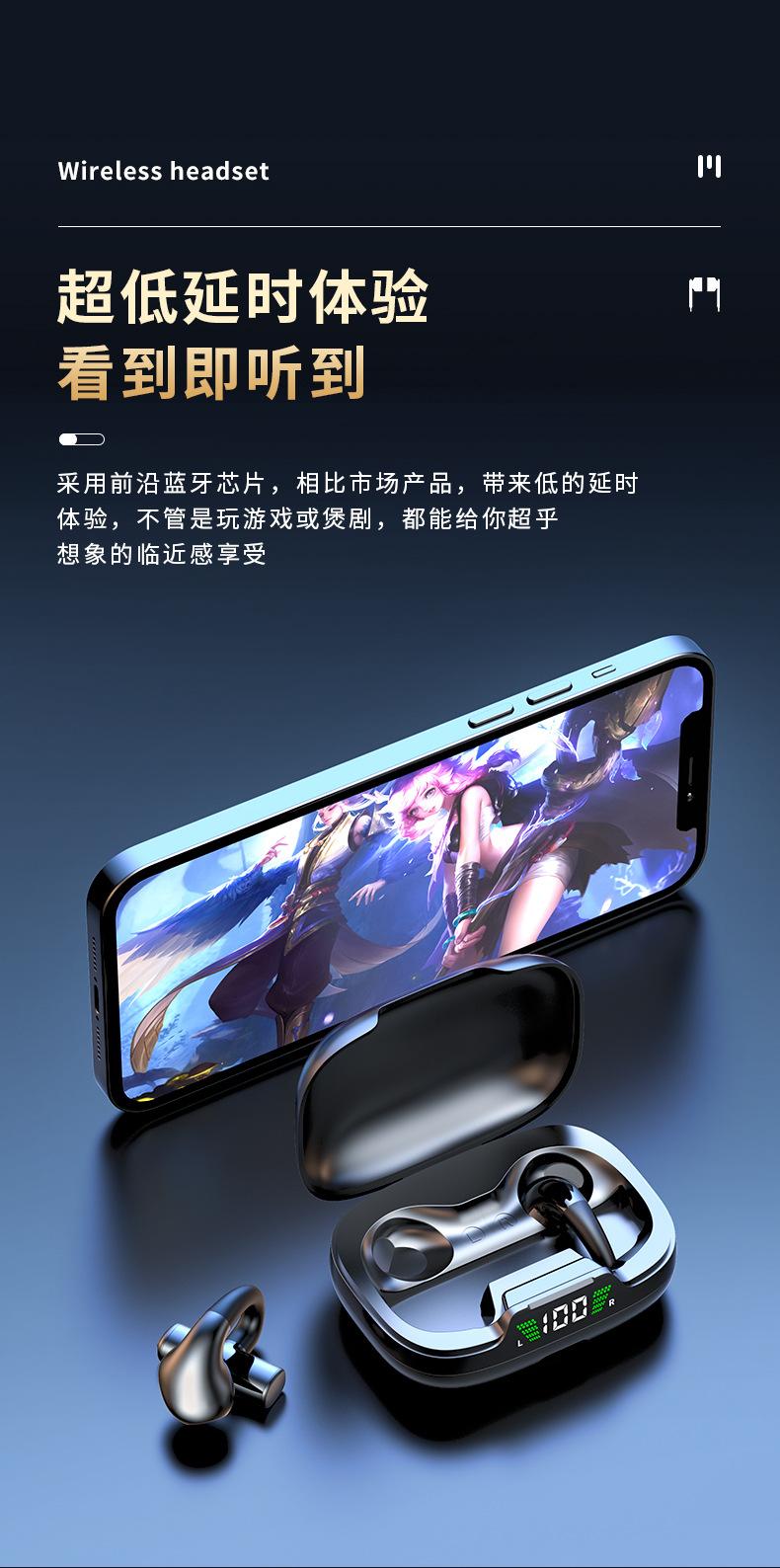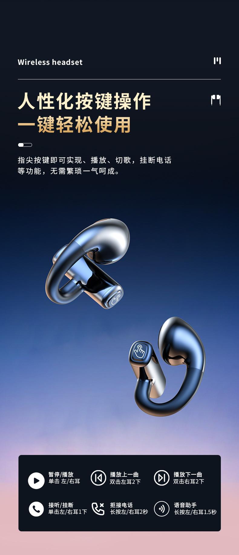 Auriculares inalámbricos Bluetooth JR03 TWS con clip, tecnología negra, deportivos, cómodos de llevar.