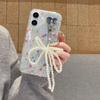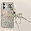 Colgante de flor pequeña colorida estilo coreano con lazo de perla
