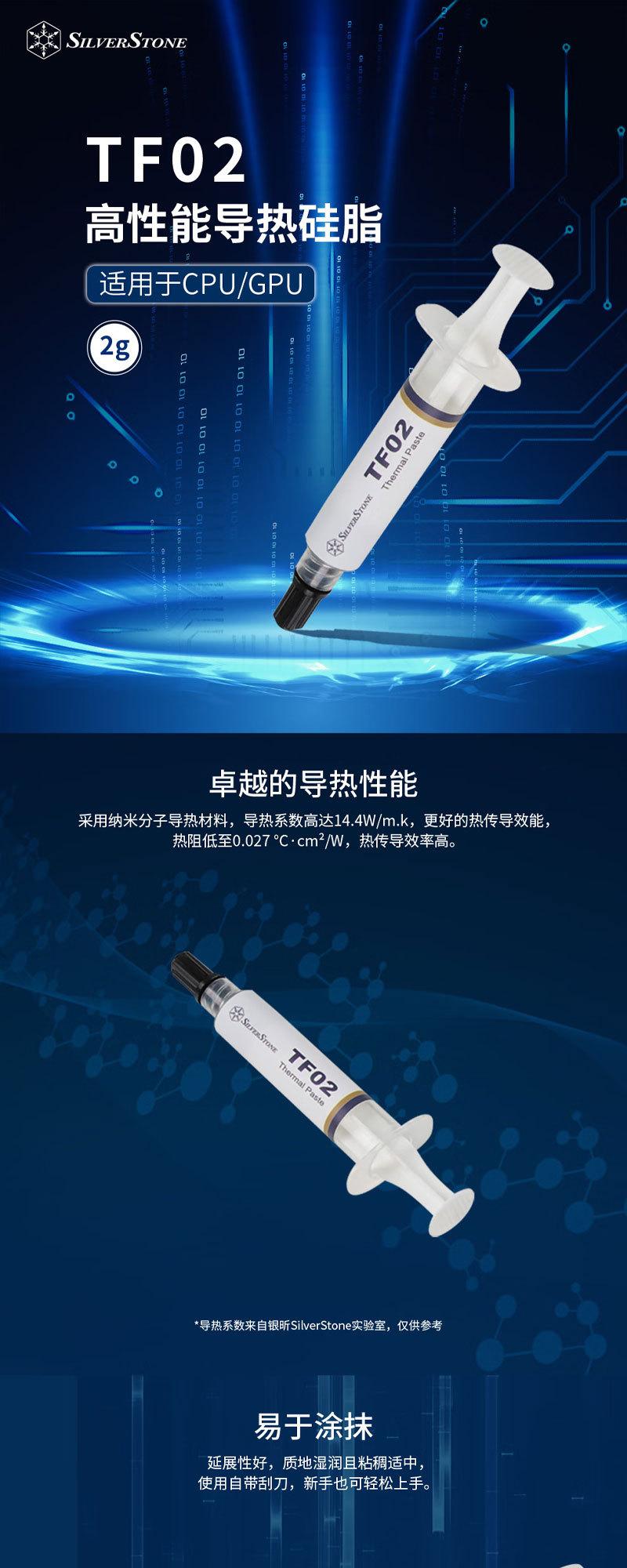 Yinxin (SilverStone)Grasa de silicona TF02 Grasa térmica para CPU Conductividad térmica 14,4 W/mk/caja de aluminio