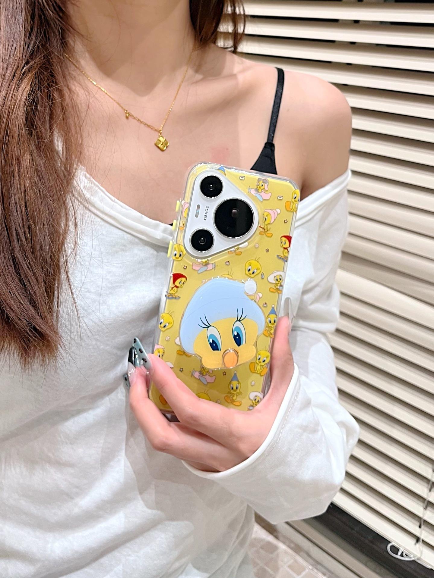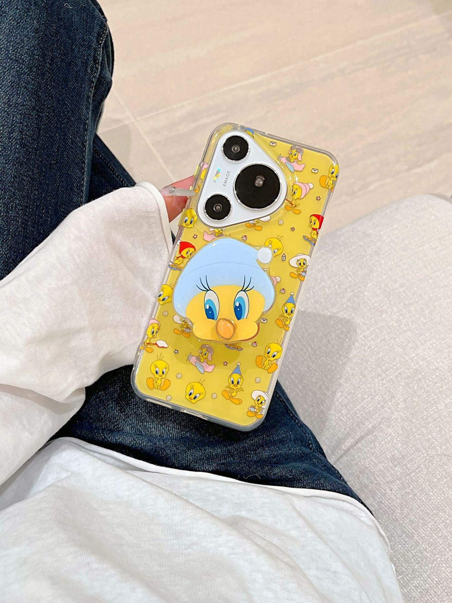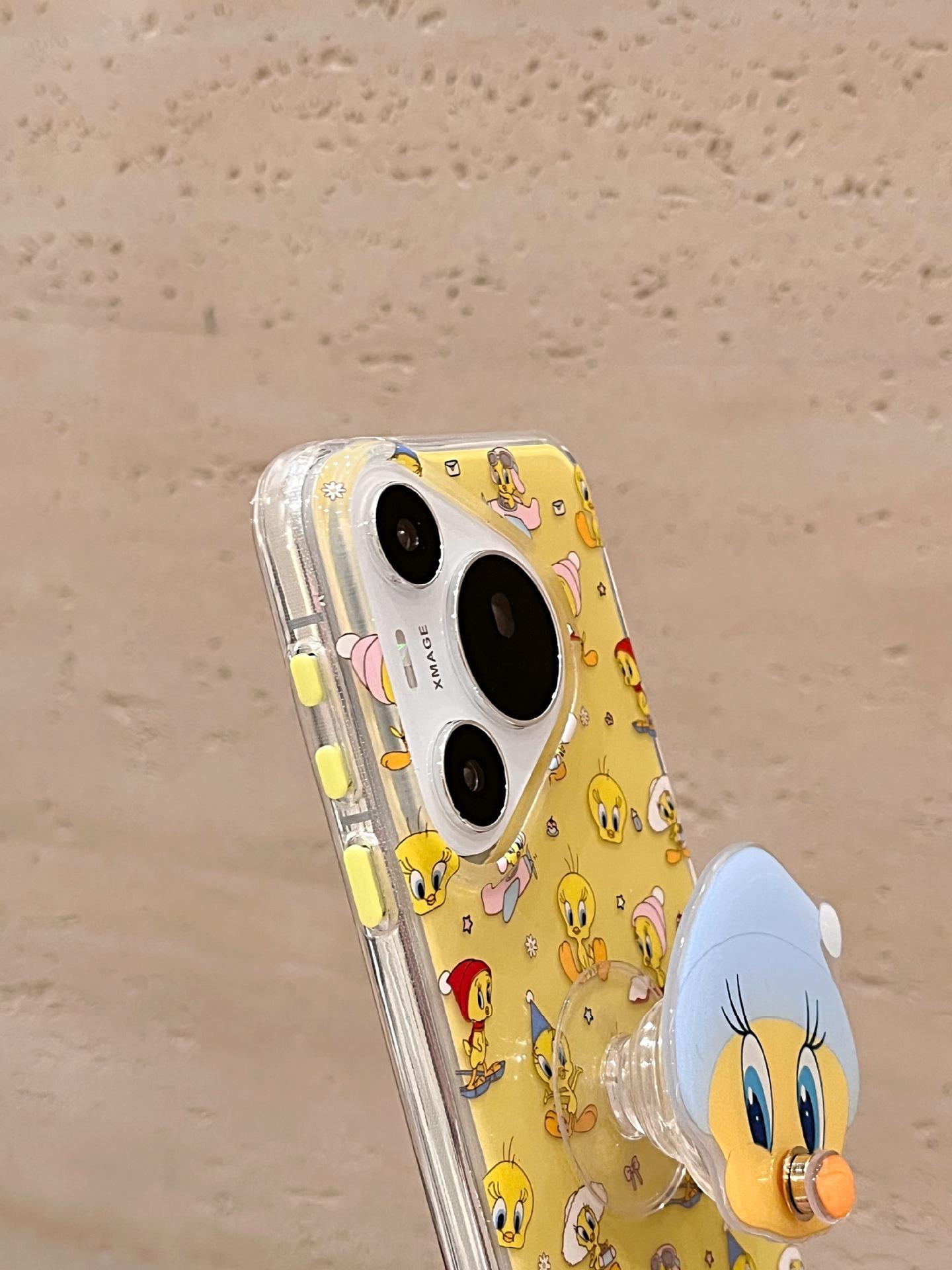 Lindo Pato Amarillo de Dibujos Animados para Funda de Teléfono Huawei mate60Pro P70Pro Soporte Divertido Mate60 Duro