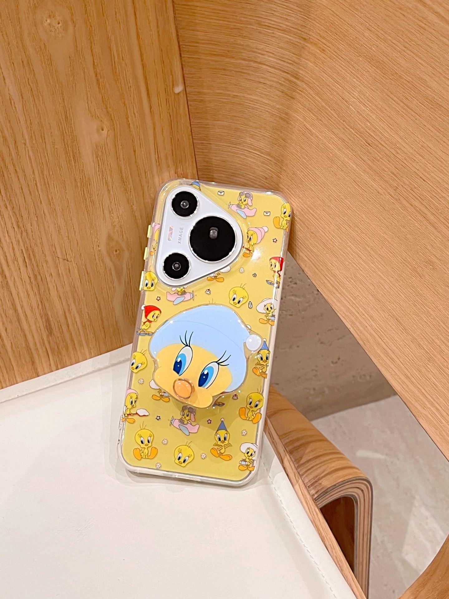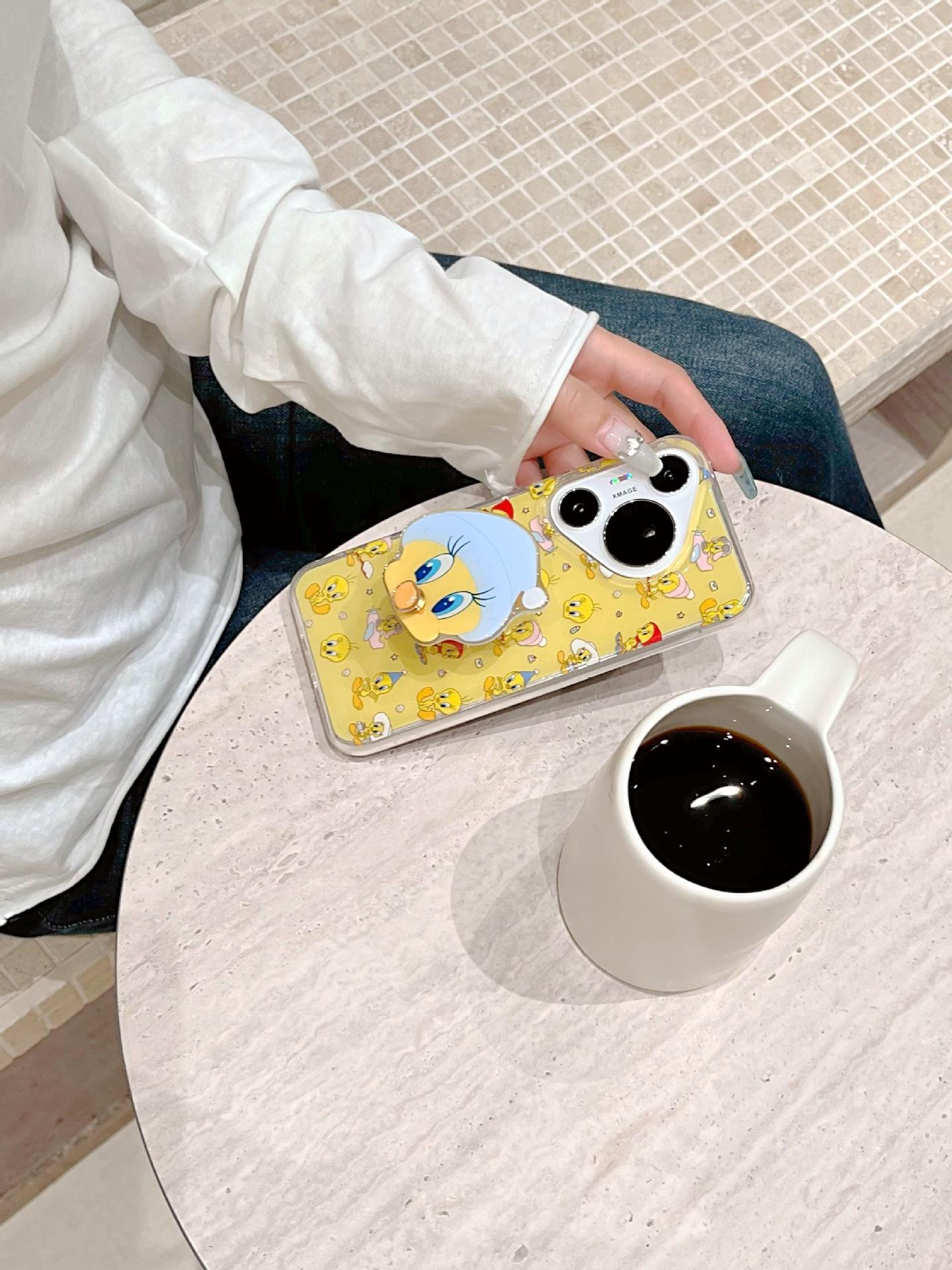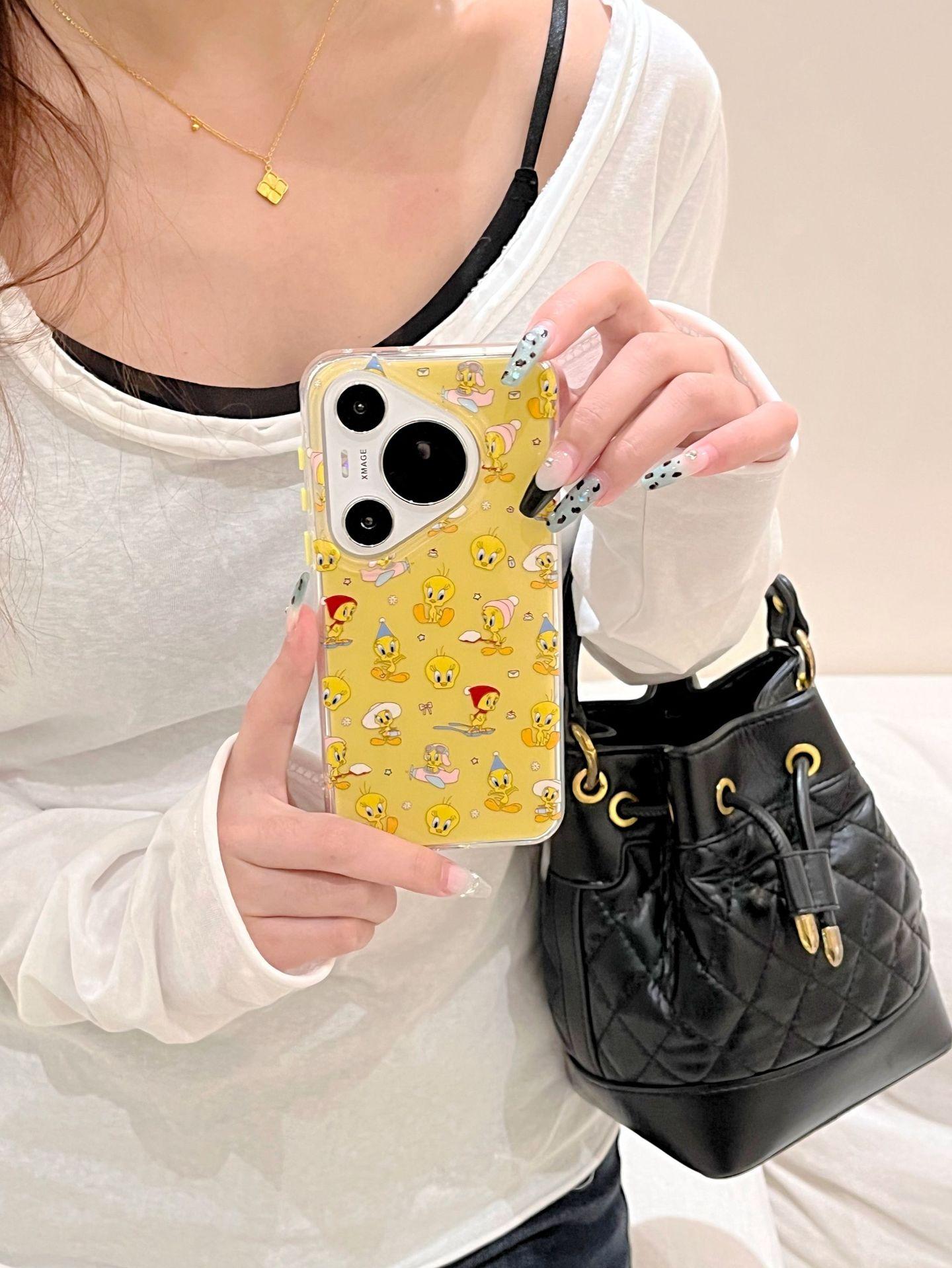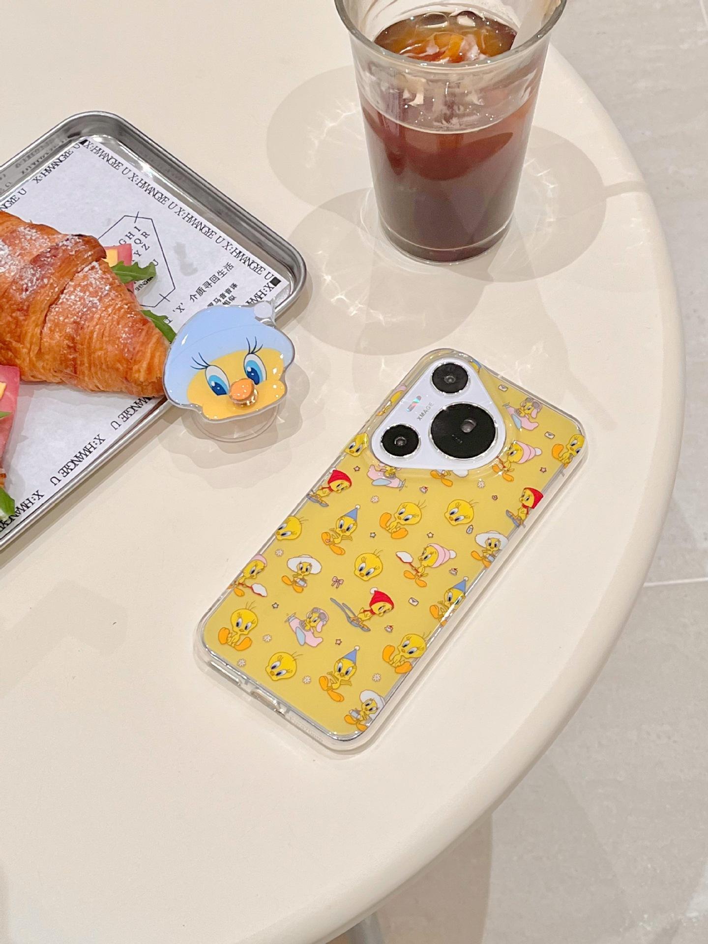 Lindo Pato Amarillo de Dibujos Animados para Funda de Teléfono Huawei mate60Pro P70Pro Soporte Divertido Mate60 Duro
