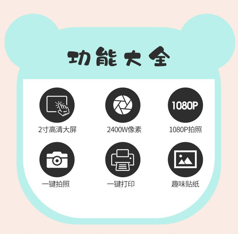 Mini cámara réflex digital HD para niños, juguete de impresión de 2.0 pulgadas, pantalla grande HD, cámara de impresión con un solo botón
