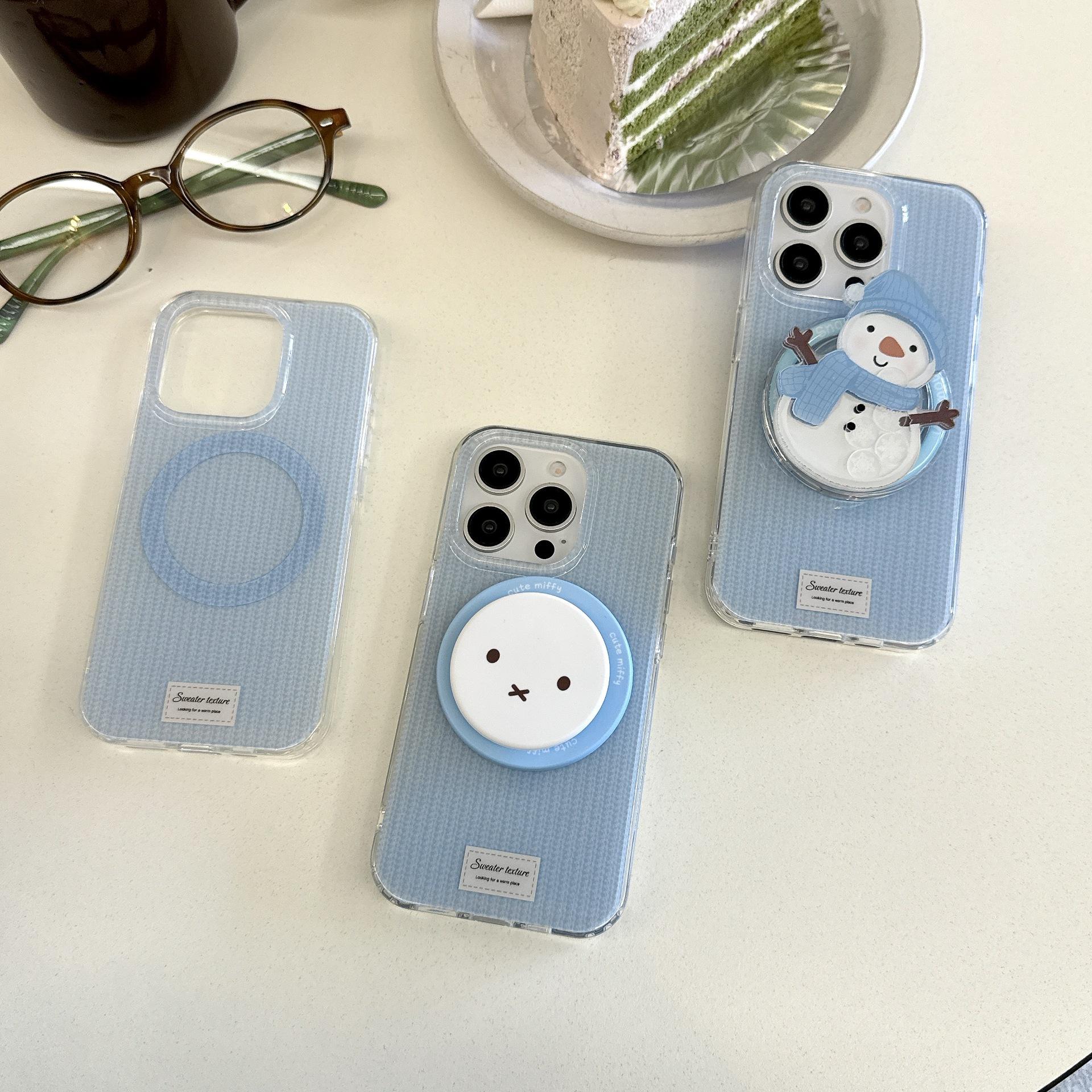 Funda con diseño de muñeco de nieve y conejo Miffy de dibujos animados para Apple Pro Max de 16 pulgadas, iPhone 15, soporte magnético de 13 pulgadas y 14 pulgadas.