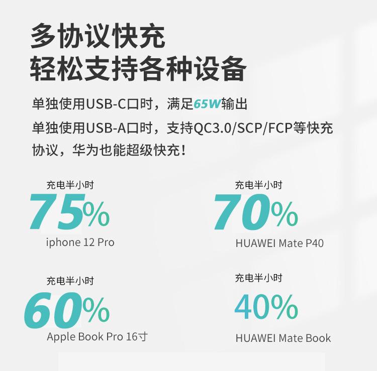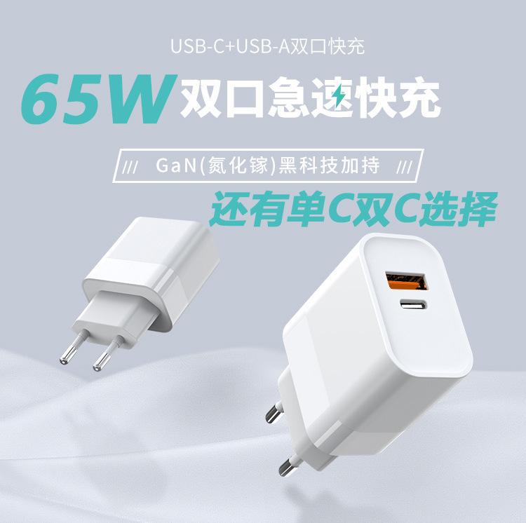 Cargador GaN Cabezal de carga rápida GaN Cabezal de carga Cabezal de carga Cabezal de carga rápida PD65W Cargador estadounidense Cargador europeo Cargador australiano Cargador británico Cargador Carga rápida Carga de velocidad Cargador de teléfono móvil GAN