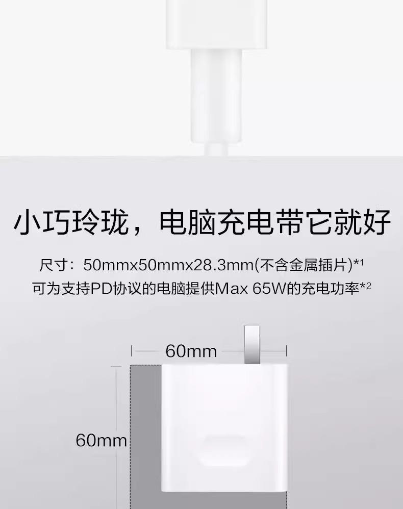 Cargador para Tablet Ji Mi 65W para Laptop MateBook13/Xs Adaptador de Corriente