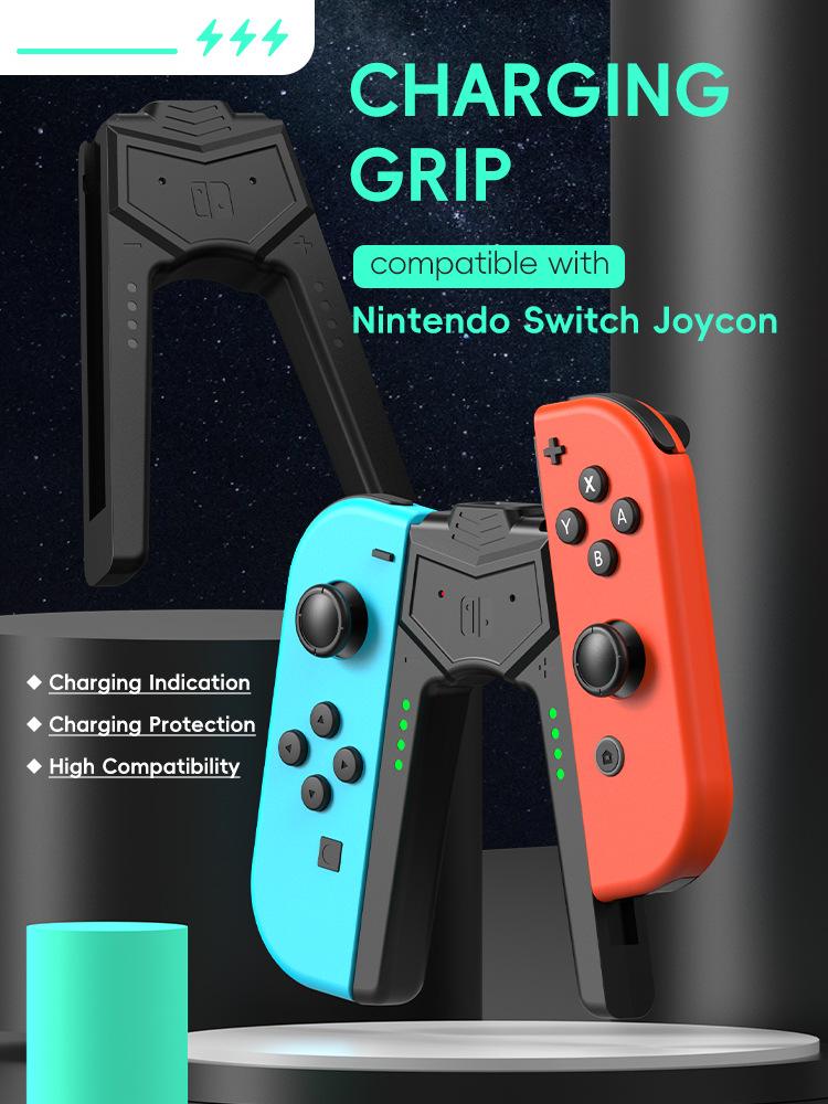 El Grip de Carga DATA FROG para Switch (modelo JCC01) es compatible con los mandos de Nintendo Switch, Switch Lite, Switch OLED, incluyendo mandos de terceros. Soporta la carga con una funda protectora, y se puede cargar sin quitar la funda.