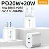 Cargador Pd40W Regulaciones Reino Unido/EE. UU. y Europeas Cabezal de Carga de Doble Puerto Tipo-C 20W Adecuado para Carga de Teléfono Móvil Apple Cabezal de Carga Rápida