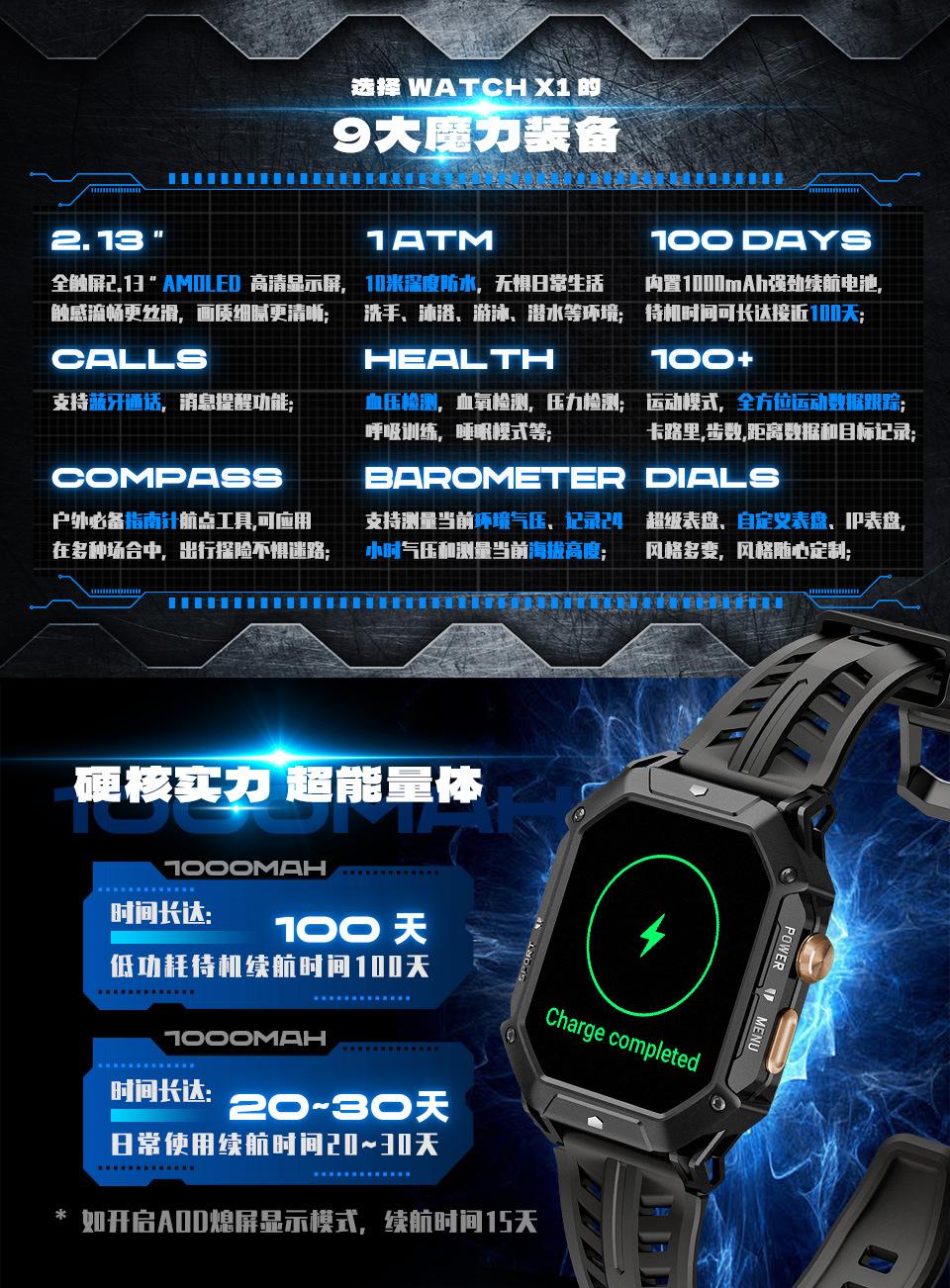 Reloj inteligente X1PRO transfronterizo con Bluetooth, asistente de voz, barómetro, brújula, reloj deportivo exterior