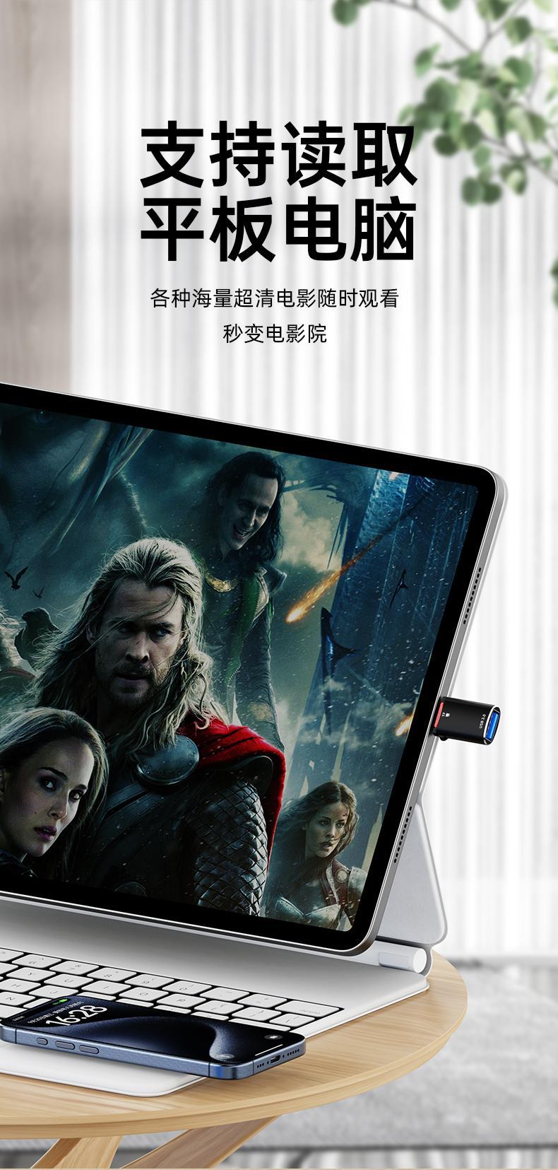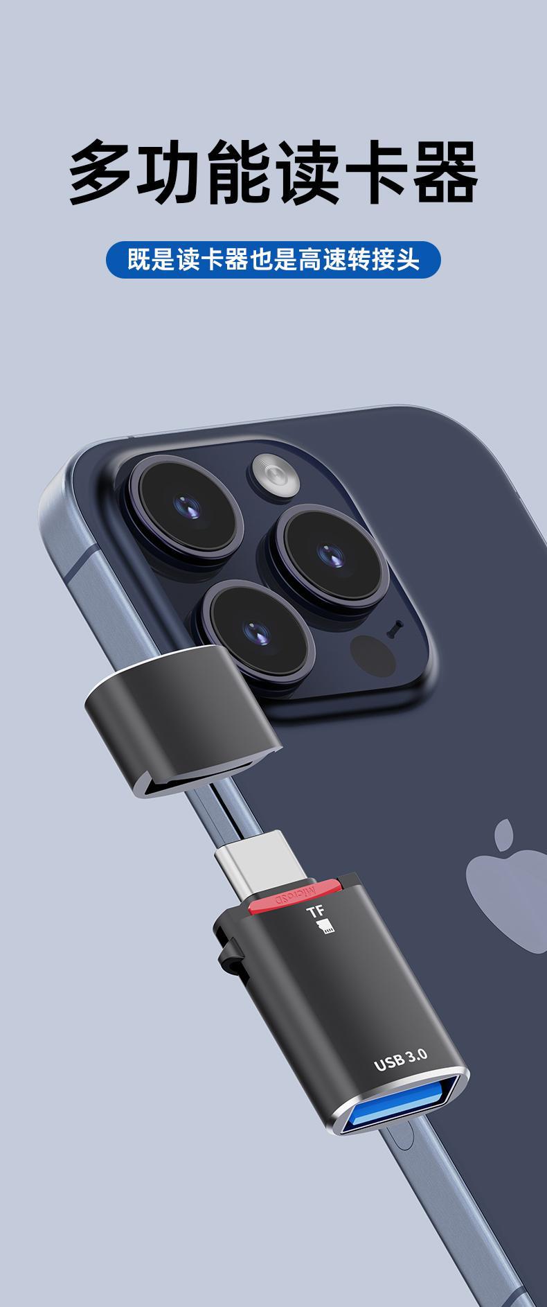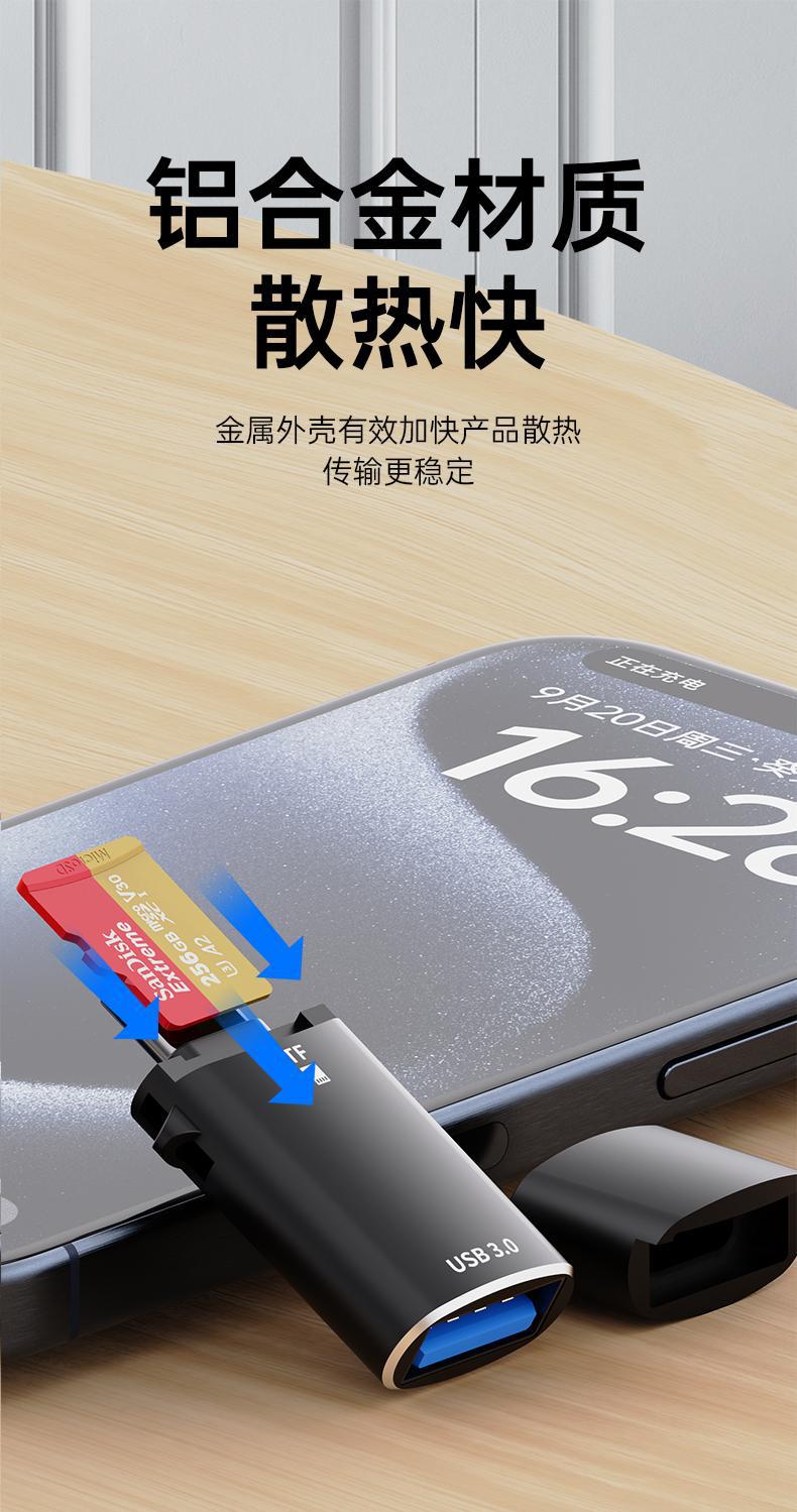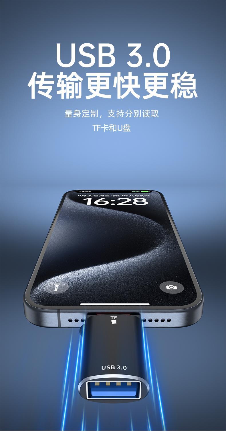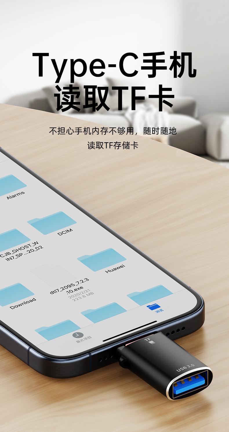 Lector de tarjetas TF para teléfono móvil Tipo-C, disco U externo OTG para Huawei, Apple iPhone15 2 en 1 descarga