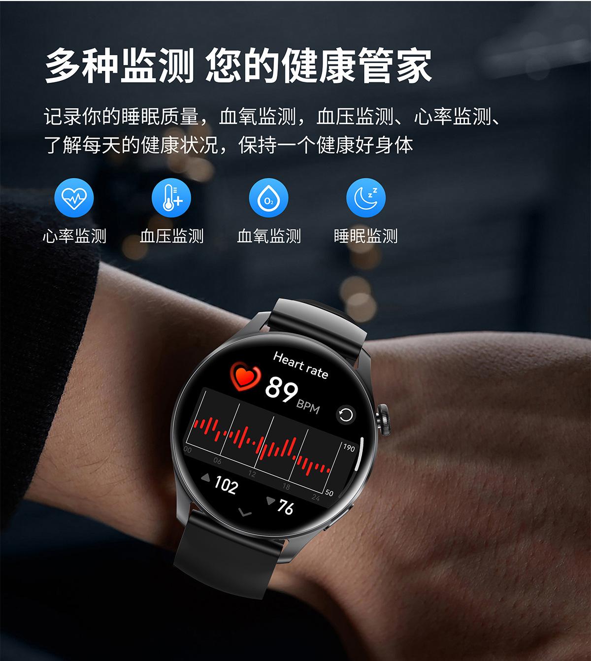 Waterproof, Step counting, Heart rate monitoring, Social entertainment, Bluetooth call, Smart reminder, Remote...