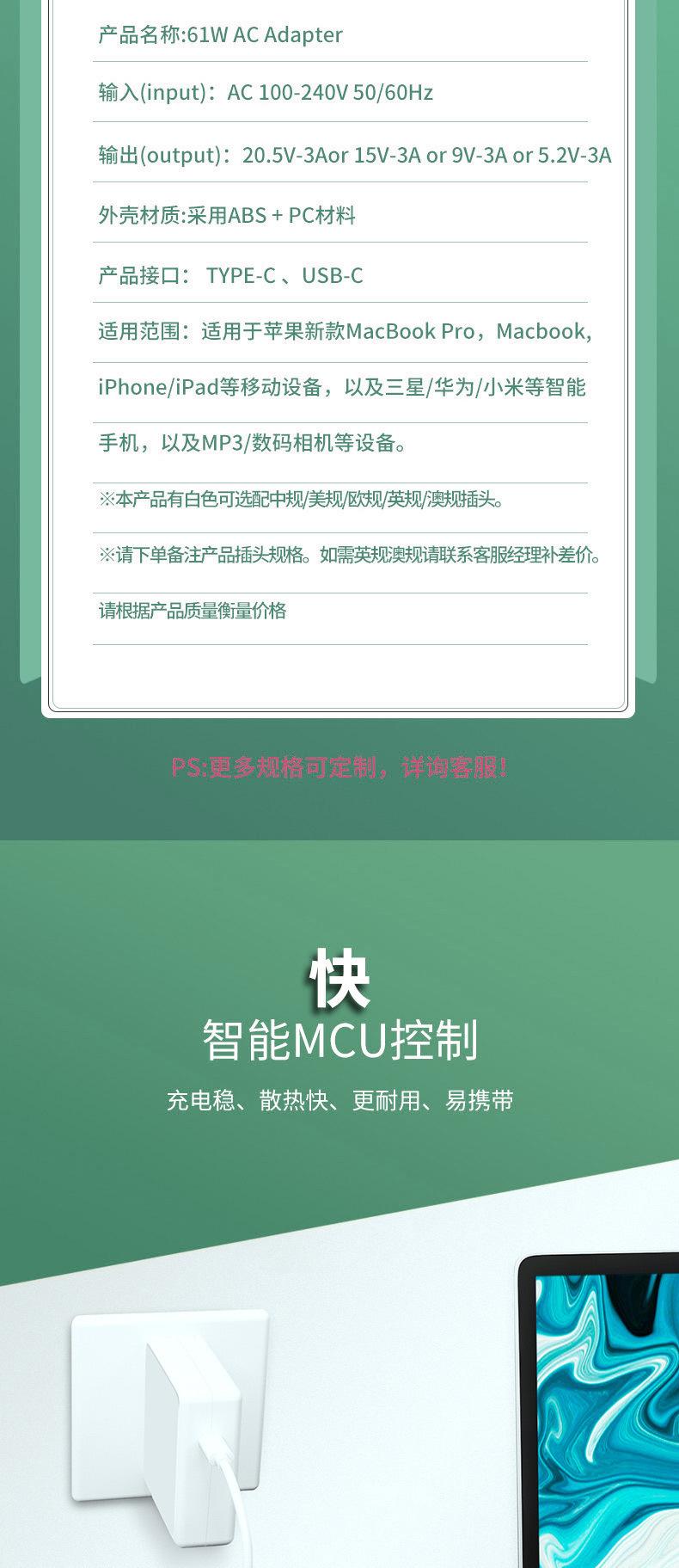 Cargador de 65W90W100W Es Compatible con Cargadores de Laptop Adaptador de Corriente Tipo C de Carga Rápida PD