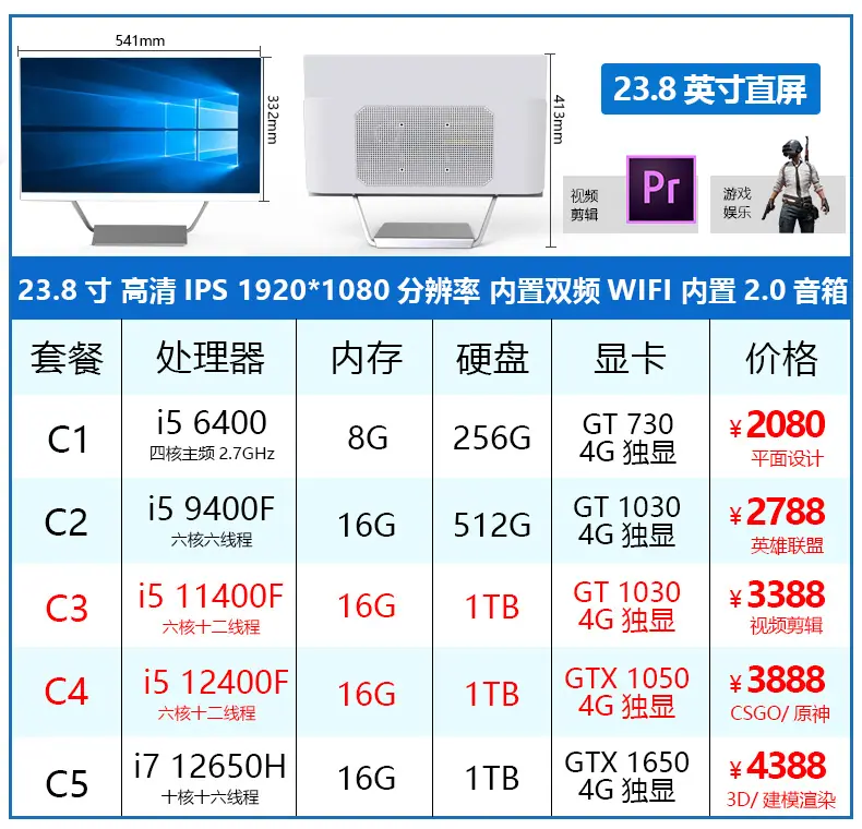 Computadora Ai Ultrafina Todo-En-Uno Ips Alta Definición Oficina Aprendizaje Hogar 22/ 24 pulgadas Computadora de Escritorio Todo-En-Uno Fábrica