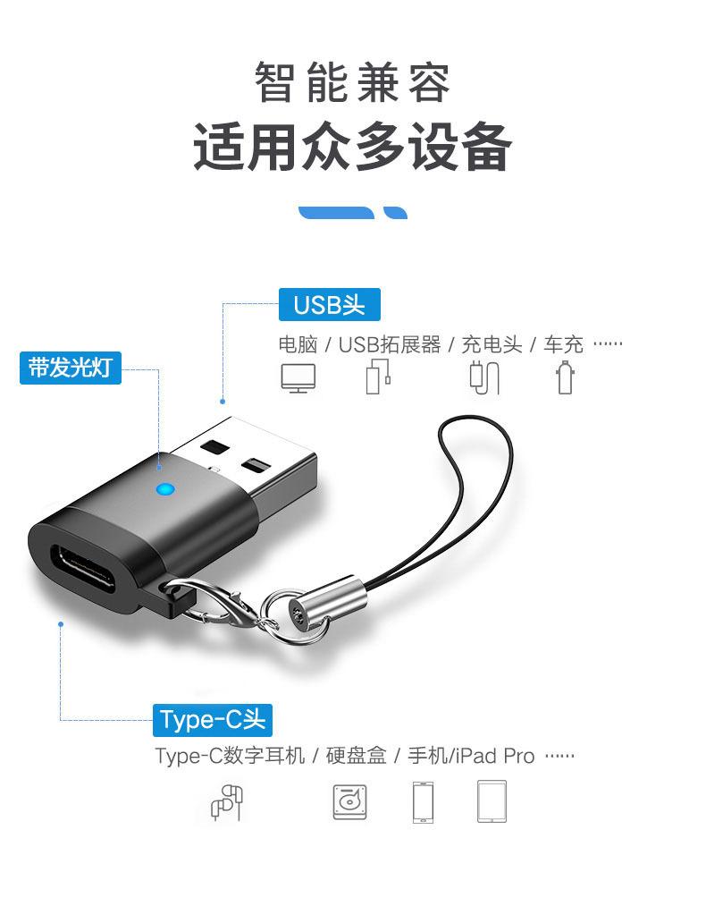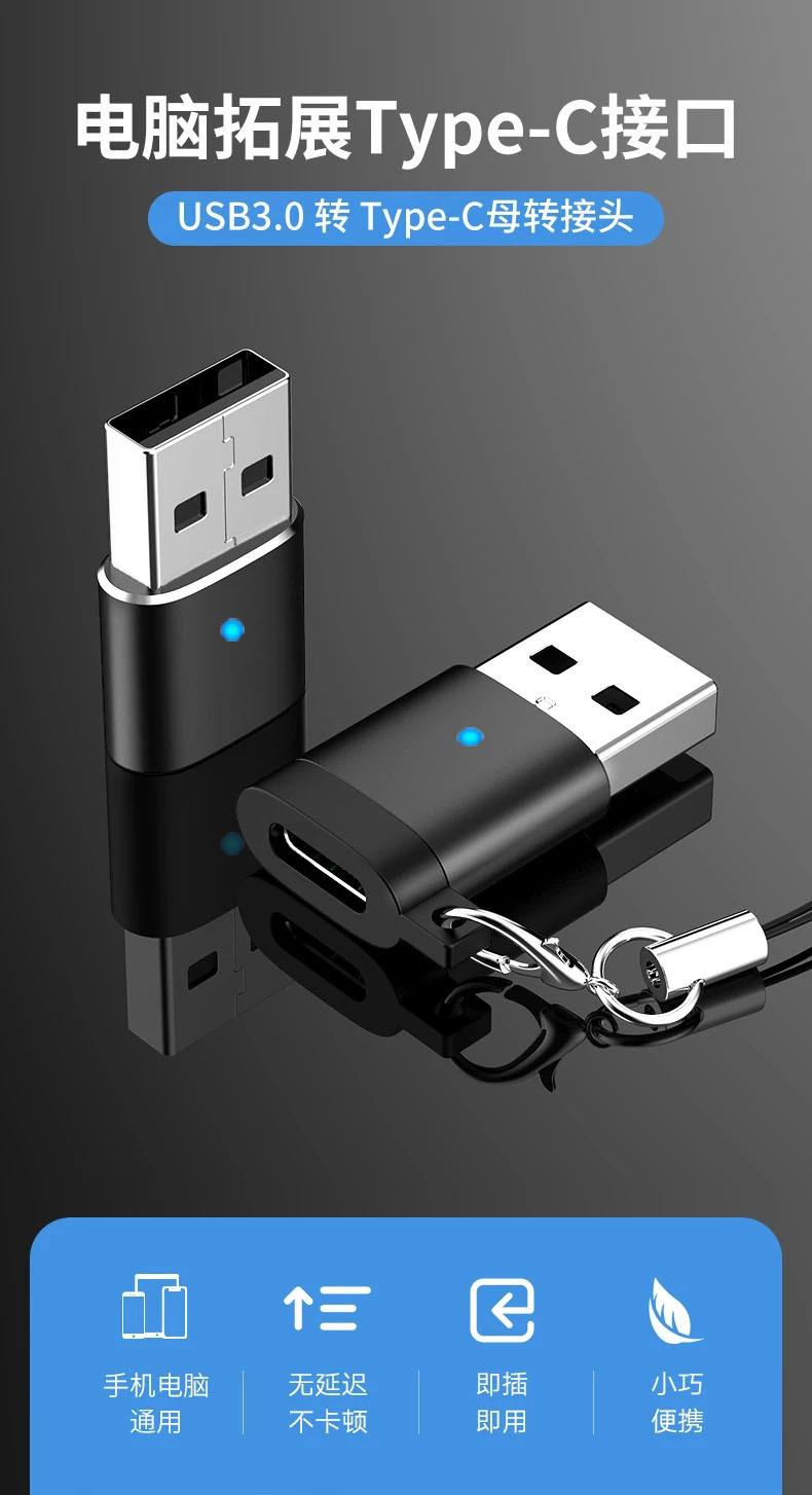 El adaptador USB 3.0 con luz es adecuado para cargar teléfonos móviles Huawei, adaptador OTG tipo C a adaptador USB.