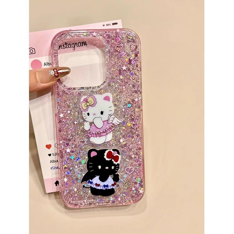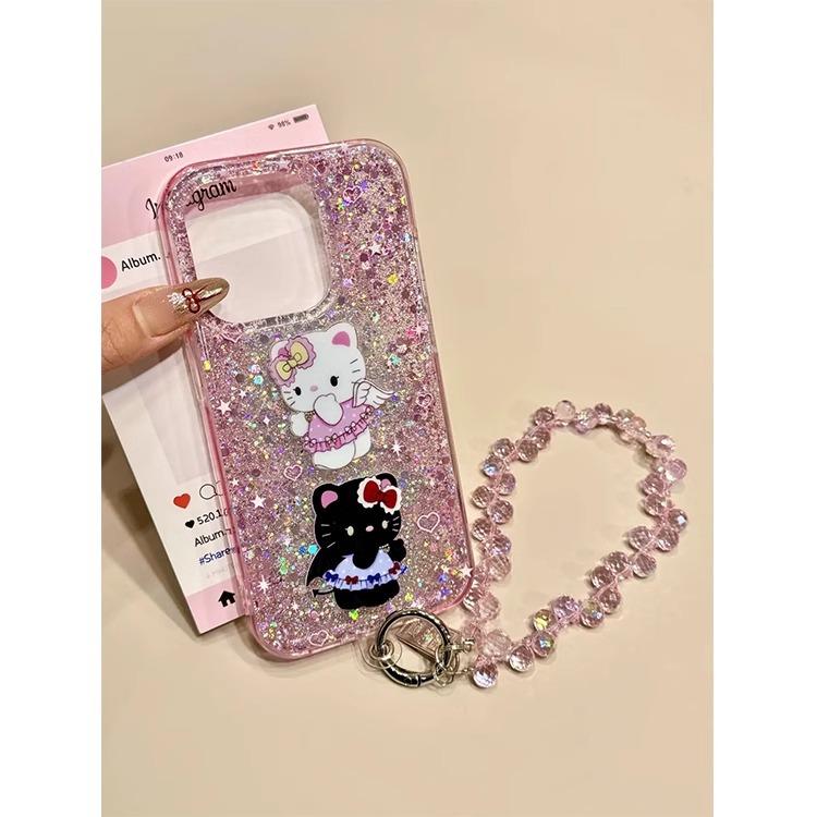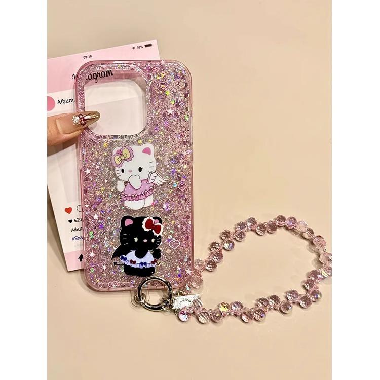 Funda para teléfono móvil Apple 15, iPhone 16 Pro Max, con purpurina, diseño de gato KT 14 Pro, cuerda portátil, 13, para mujer 16