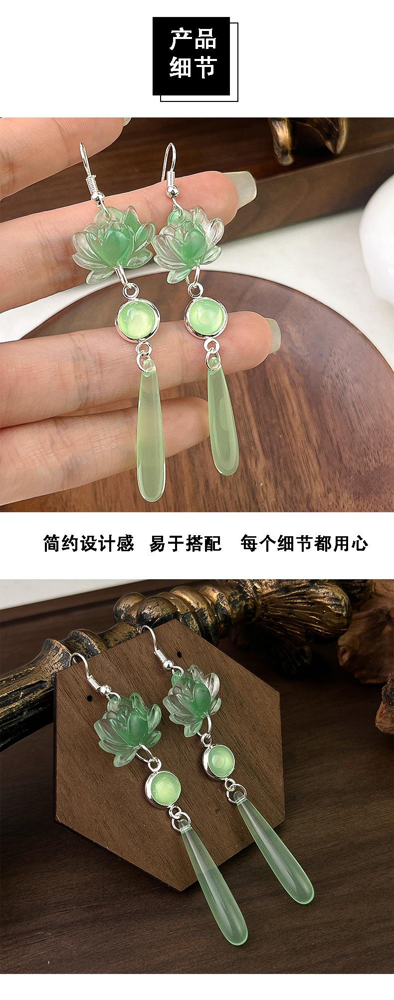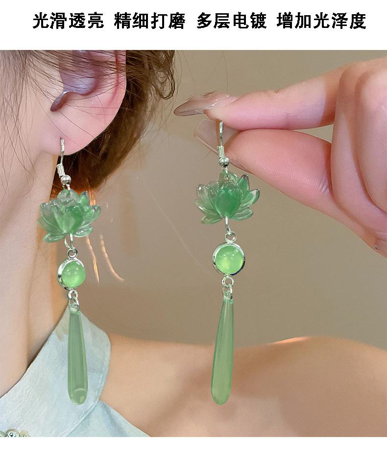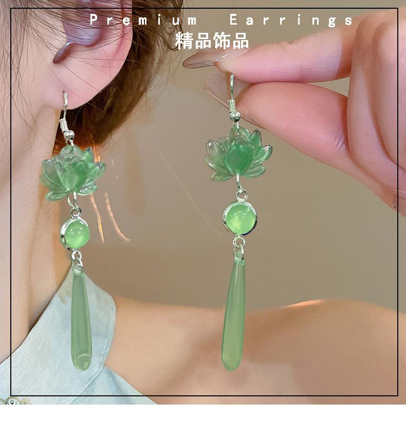 Nuevos Pendientes Chinos de Loto de Gota de Agua Larga para Mujer 2024 Nuevo Estilo Nacional Pendientes Frescos Antiguos Joyería para la Oreja Mujer
