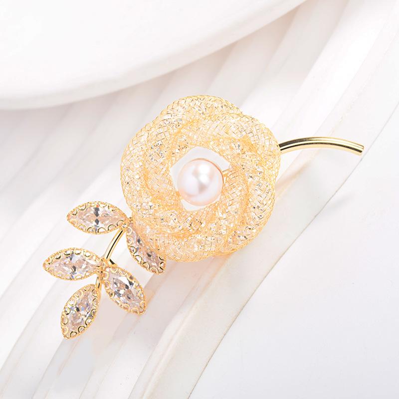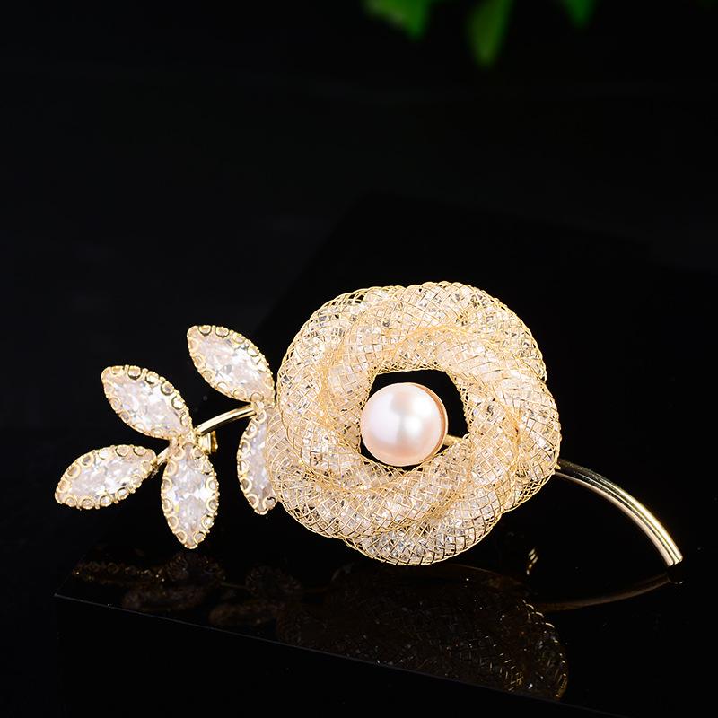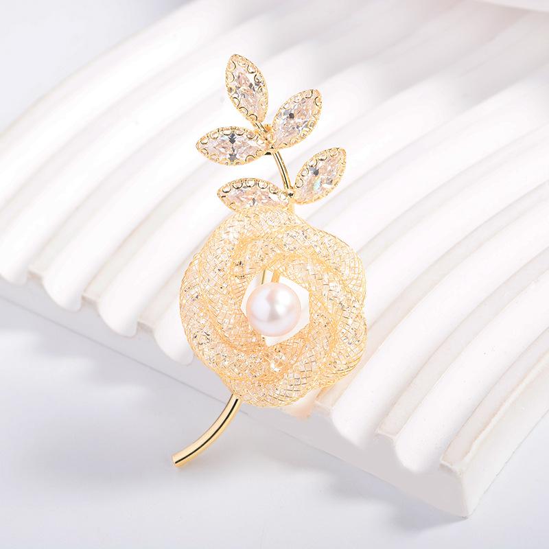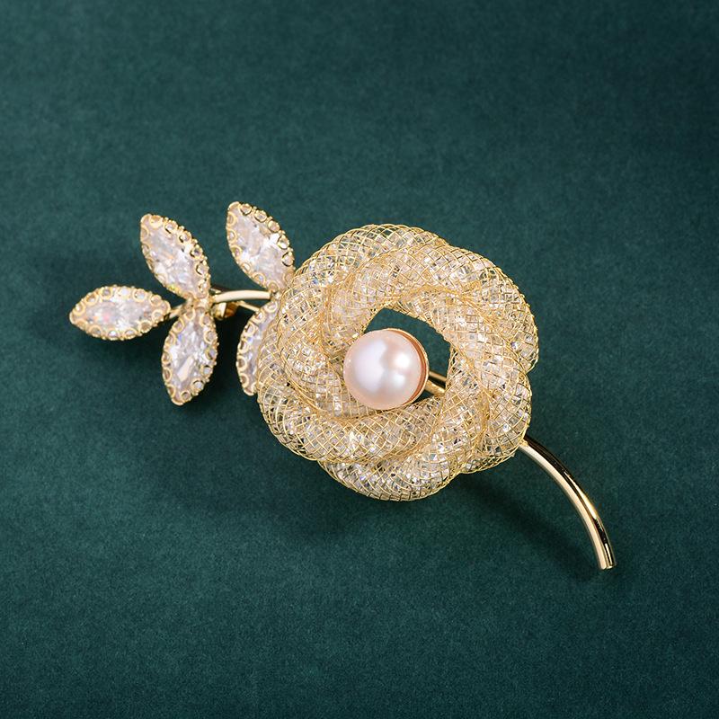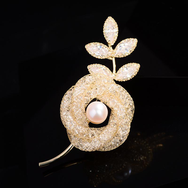 Compra Nuevo Elegante Broche de Rosa Hueca Diseño de Nicho Sentido Perla de Agua Dulce Ramillete Traje Abrigo Accesorios Pin al por mayor en Joom.pro