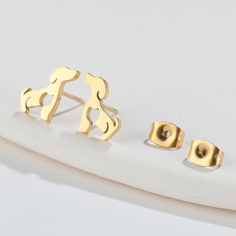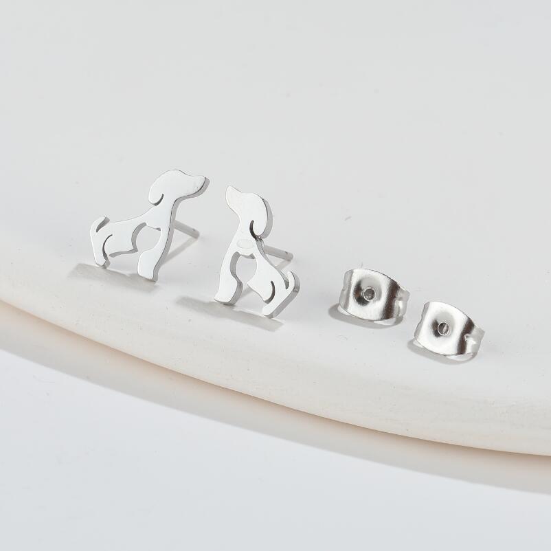 Pendientes de acero inoxidable con diseño de perro del zodiaco, diseño de animales de dibujos animados, huecos y con forma de amor. Disponibles en stock.