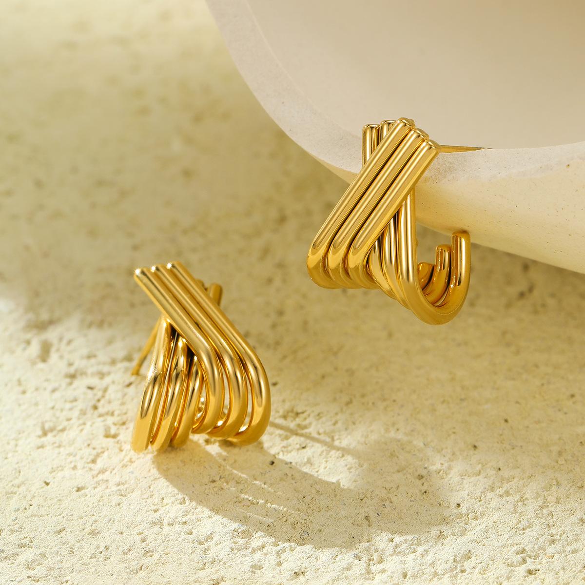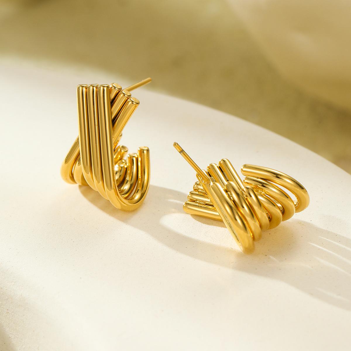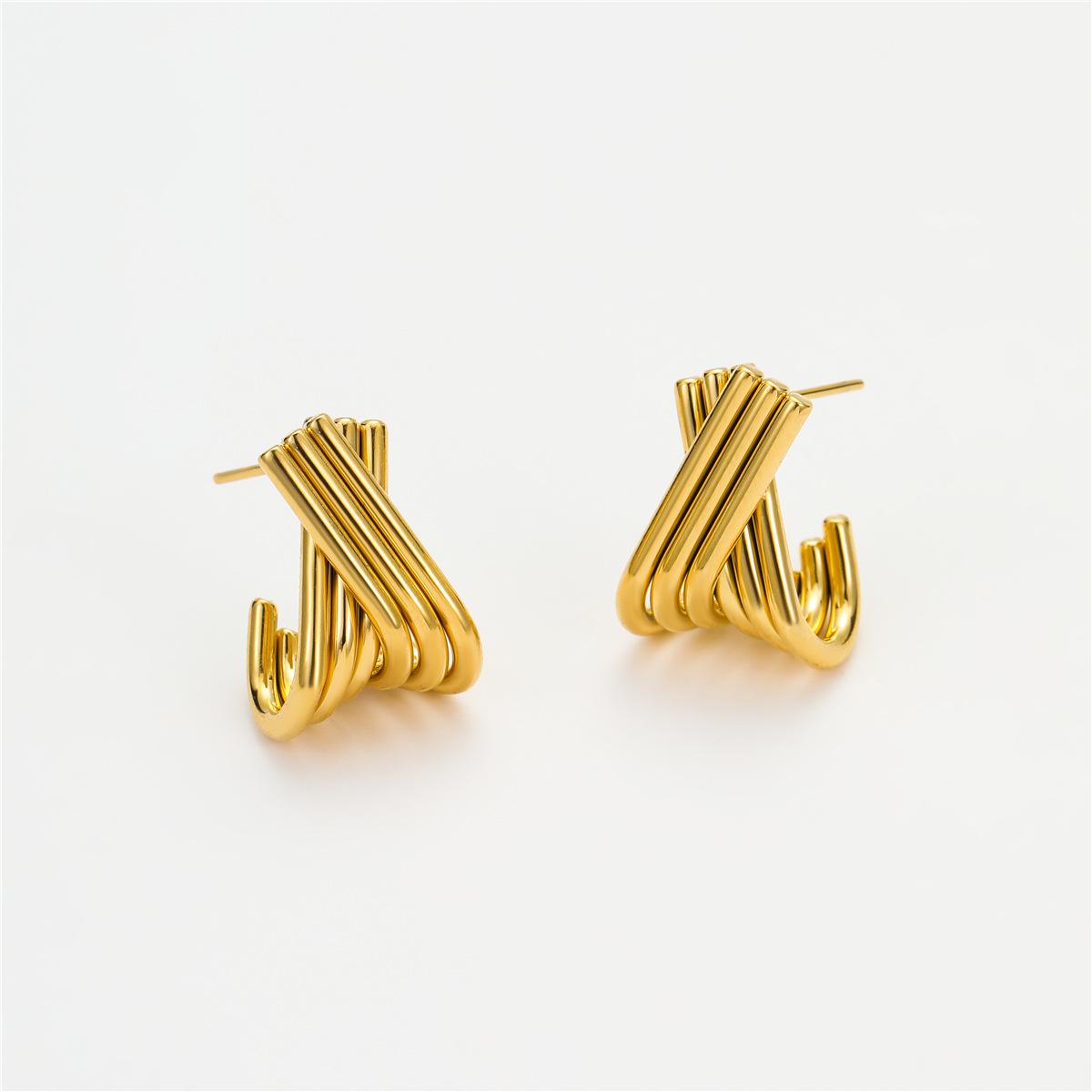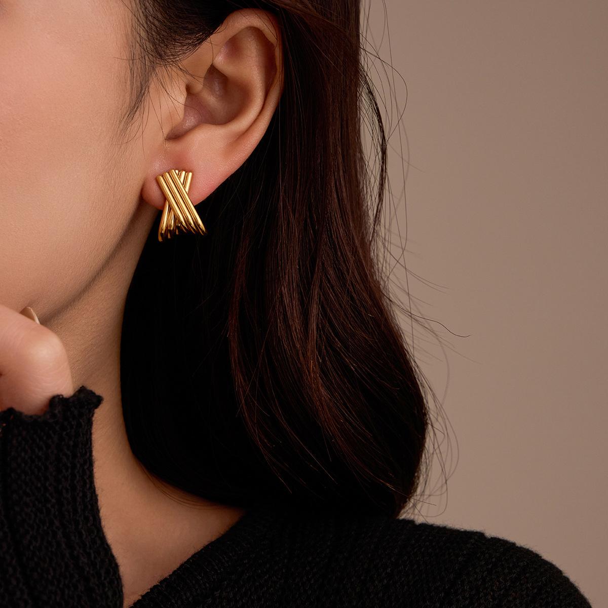 Pendientes de acero inoxidable de alta gama con nicho de viento INS transfronterizo de Europa y Estados Unidos, pendientes de acero de titanio de líneas simples en forma de X, pendientes al por mayor