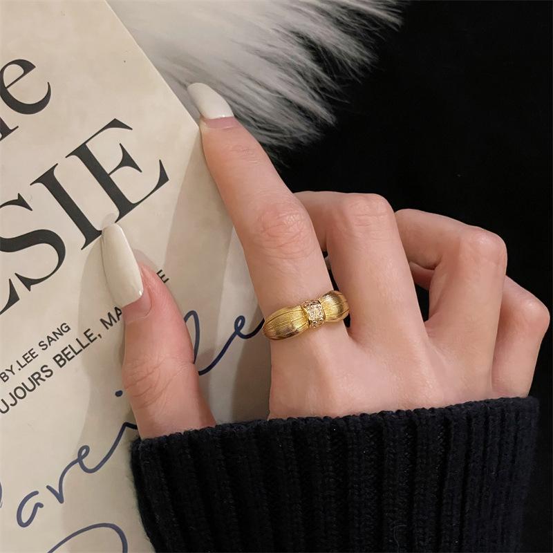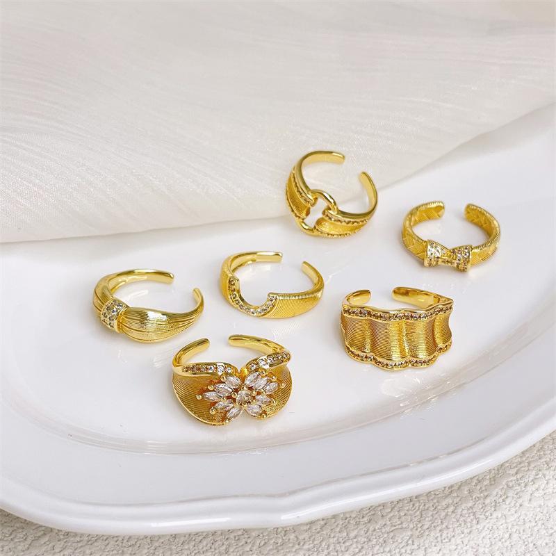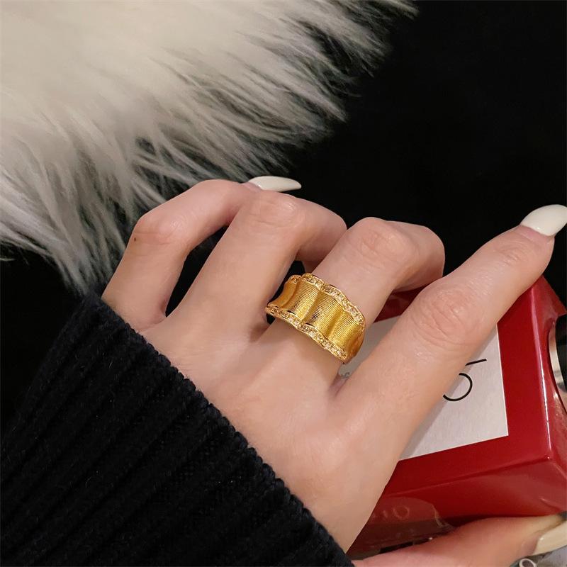 Nuevo Estilo Chino Estilo Antiguo Medio Retro Dibujo de Alambre Estilo Palacio Anillo Abierto Elegante Dorado Exquisito Lujo Ligero Anillo de Dedo de Alta Gama