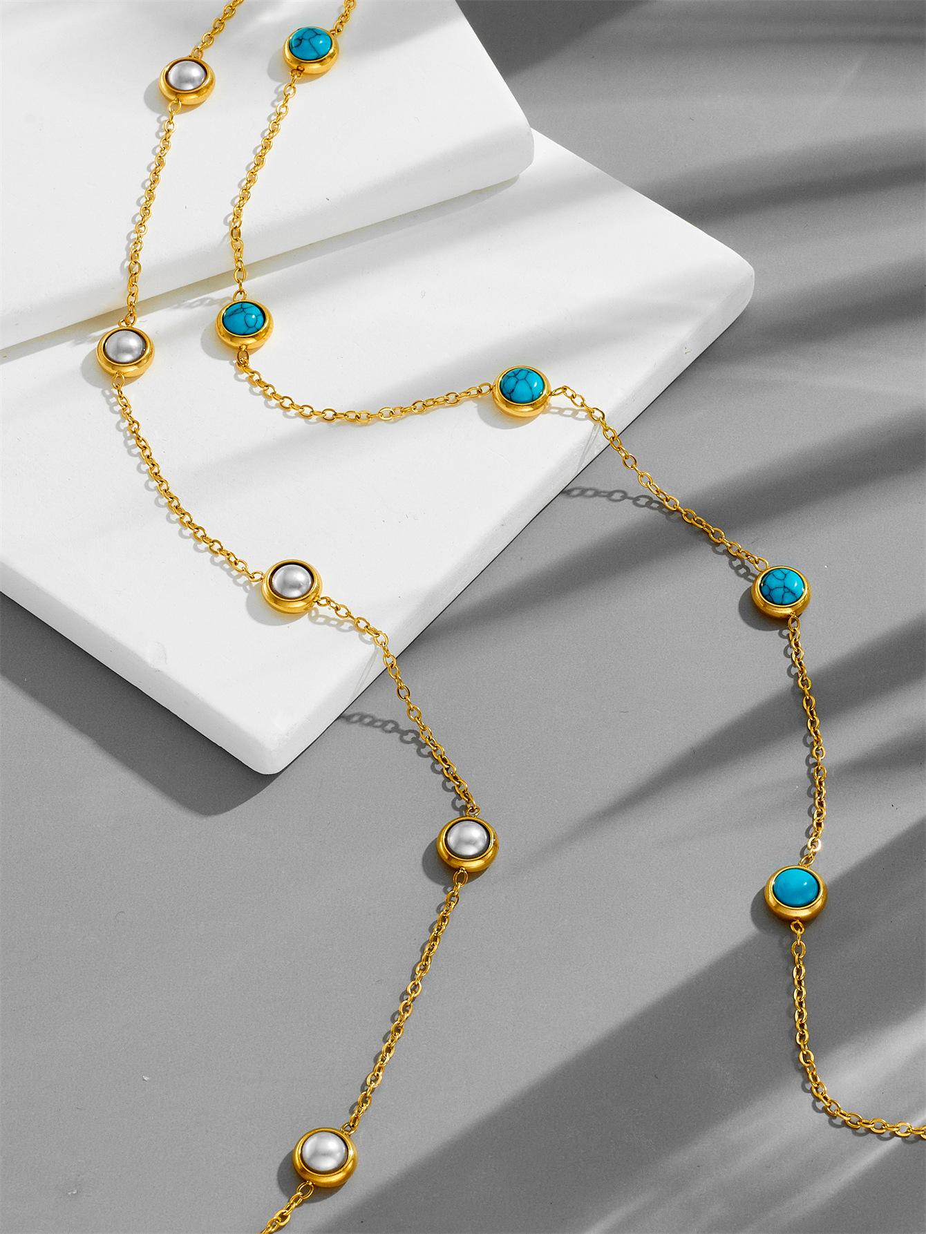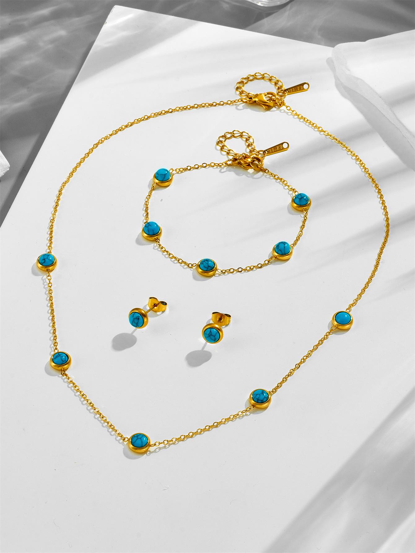 X655 white pearl necklace gold, S552 white pearl bracelet gold, E124 white pearl earrings gold, X655 blue turq...