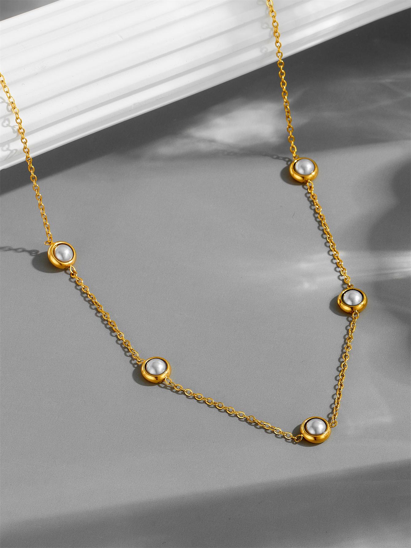 Collar de perlas combinable de verano para mujer, regalo de cumpleaños, pendientes de cadena de clavícula de acero de titanio, pulsera sin color.