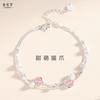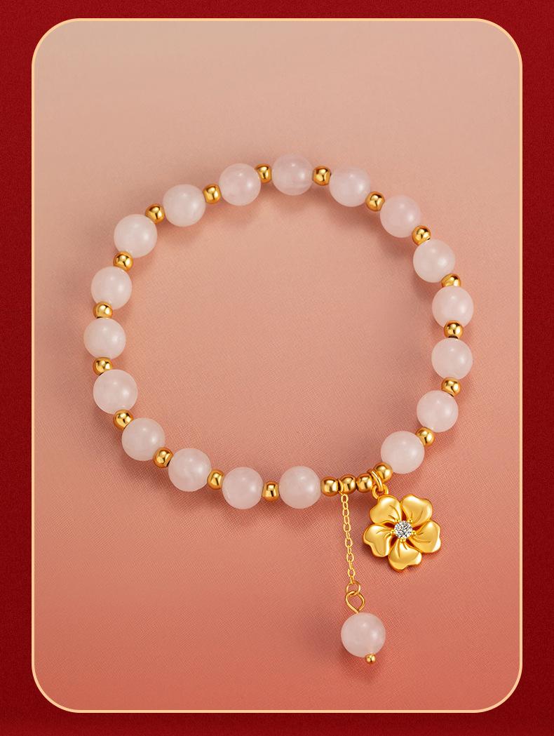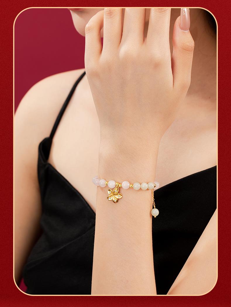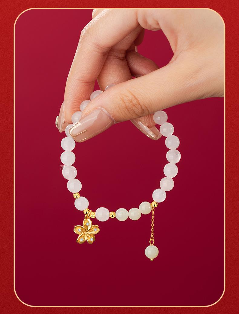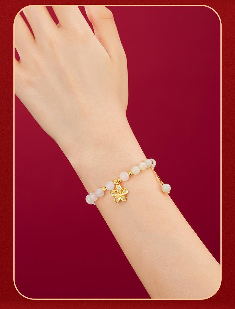 Pulsera de jade hetiano de plata esterlina 925 con diseño de melocotón y muerte, pulsera de flor de cerezo con cristal rosa y viento dulce y cauteloso.
