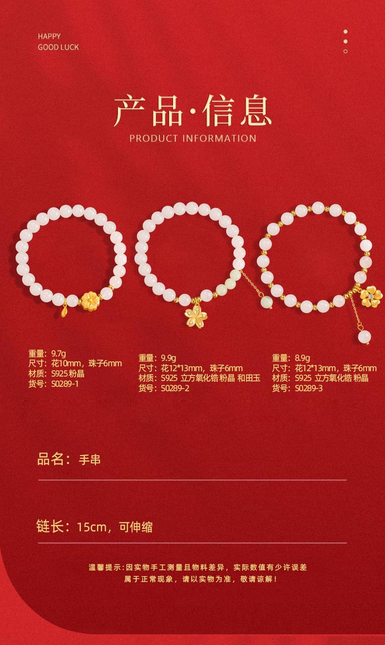 S0289-1 taozhiyaoyao bracelet, S0289-2 peach blossom bracelet, S0289-3 peach you like bracelets