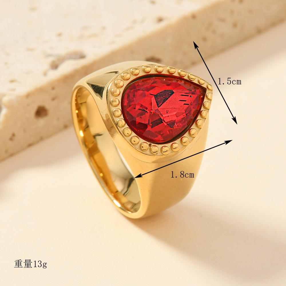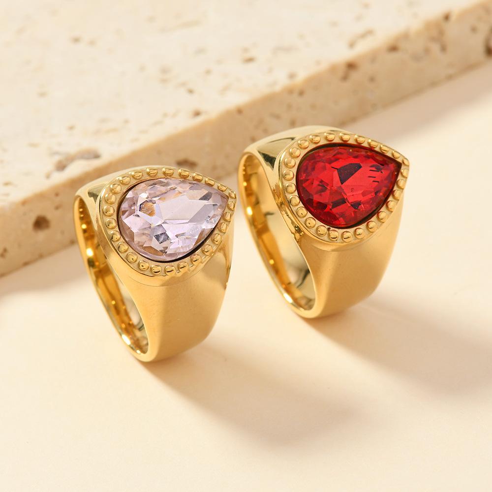 Anillo de acero inoxidable transfronterizo europeo y americano, estilo corte de moda, con gemas en forma de gota, anillo de circón ligero y lujoso.