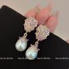 Exquisitos pendientes de estilo coreano con microincrustaciones de circonitas de imitación de perla, pendientes de temperamento de lujo ligeros y frescos para mujer, venta al por mayor