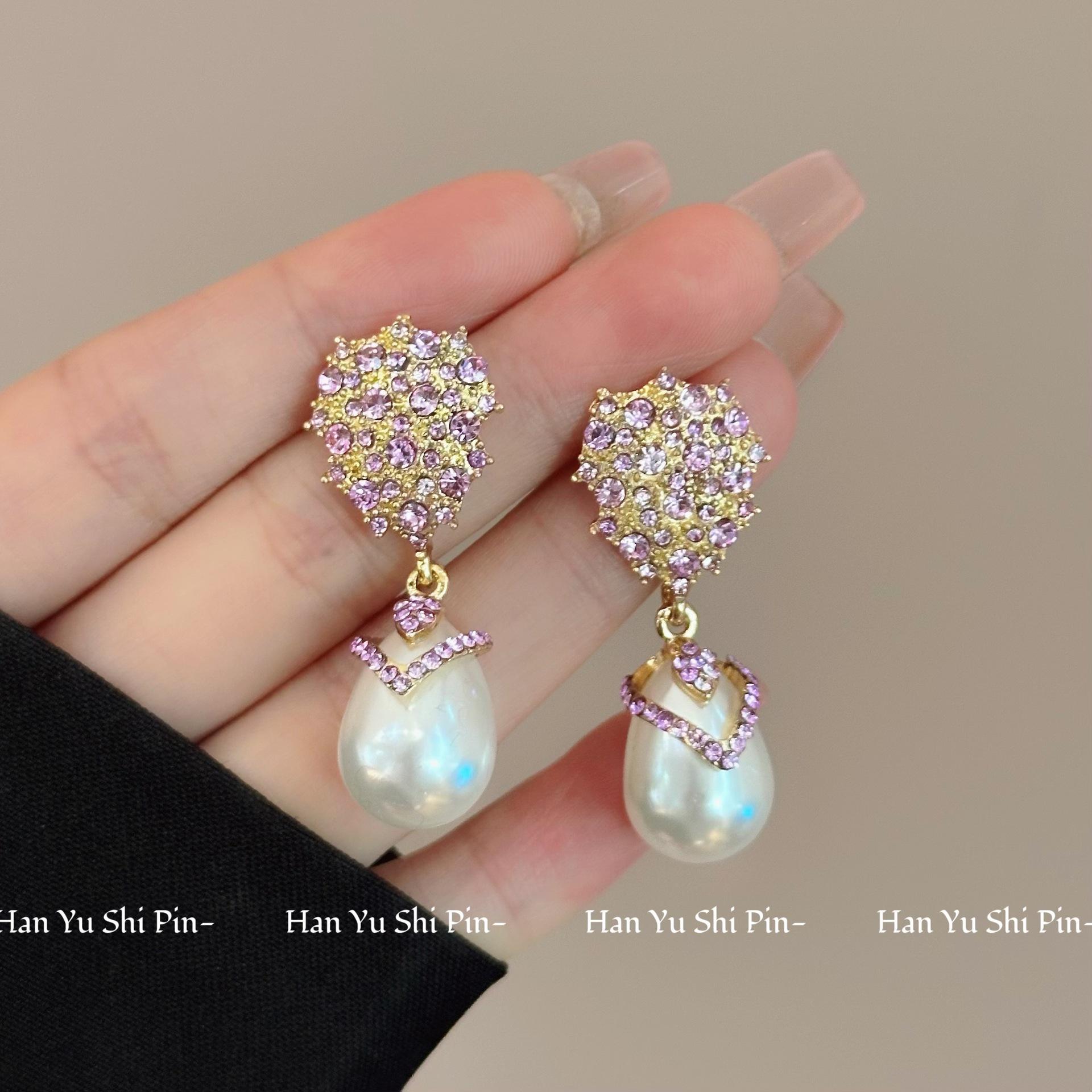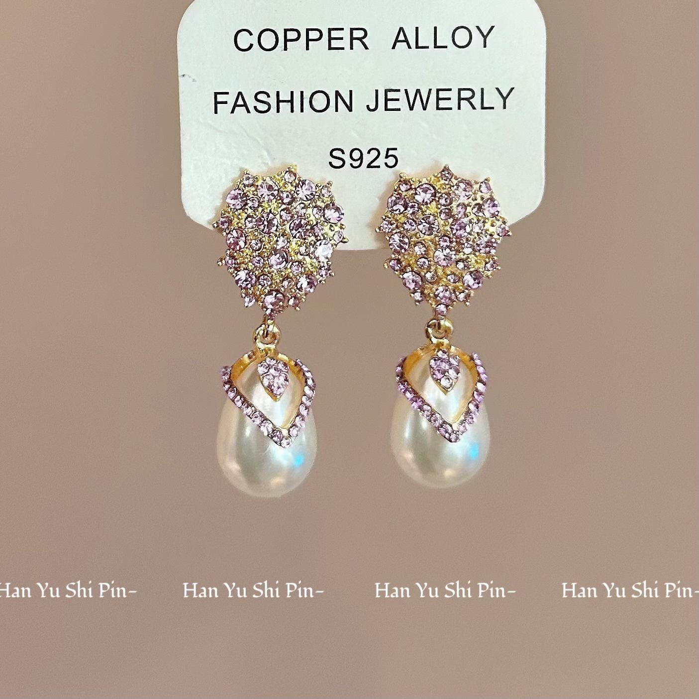 Compra Exquisitos pendientes de estilo coreano con microincrustaciones de circonitas de imitación de perla, pendientes de temperamento de lujo ligeros y frescos para mujer, venta al por mayor al por mayor en Joom.pro