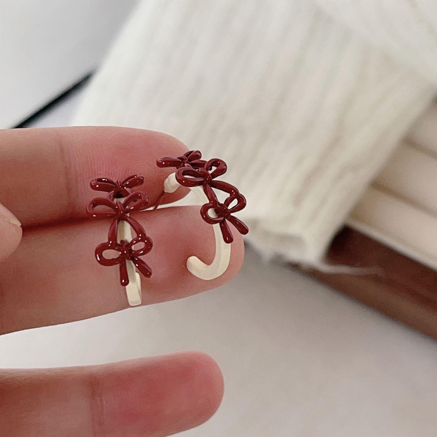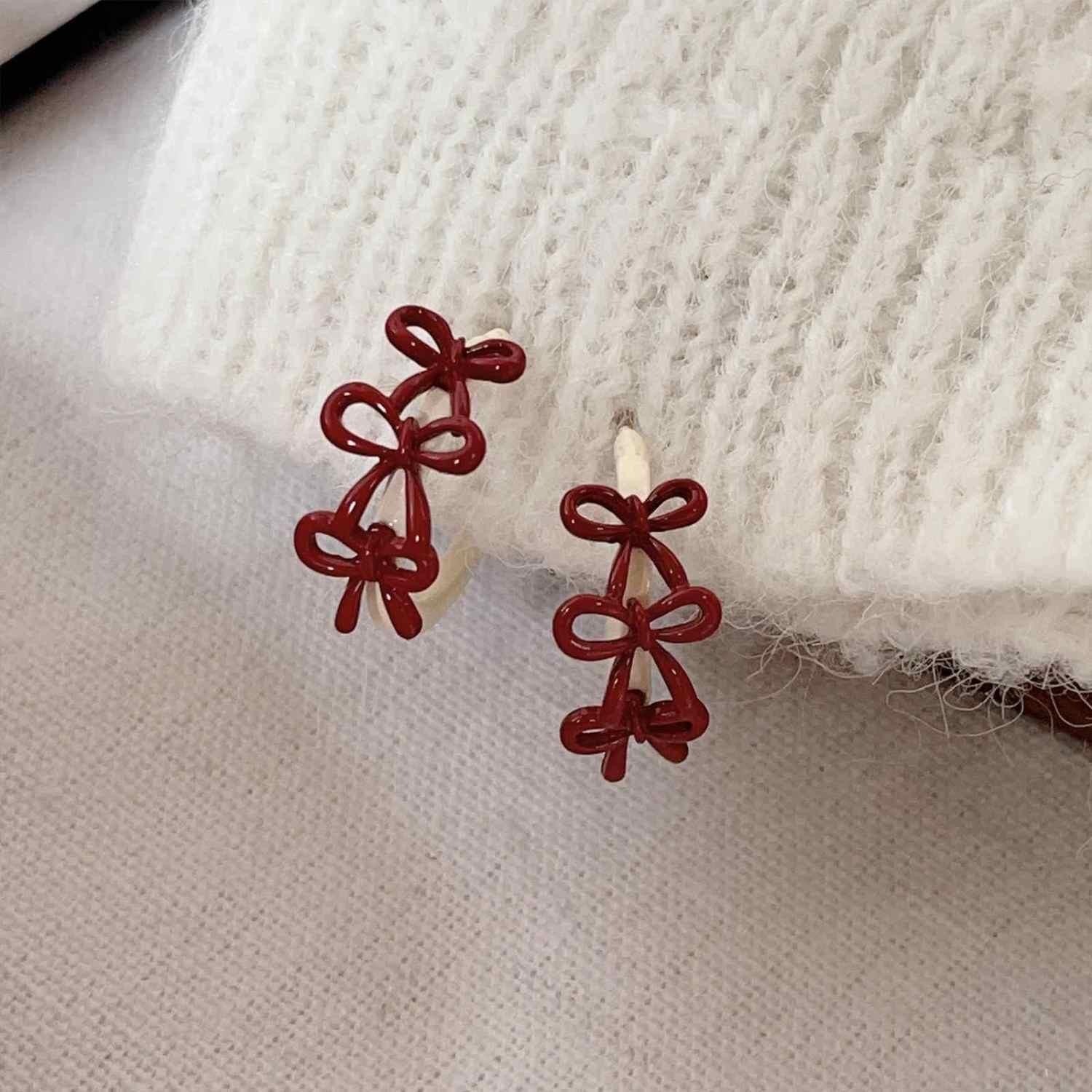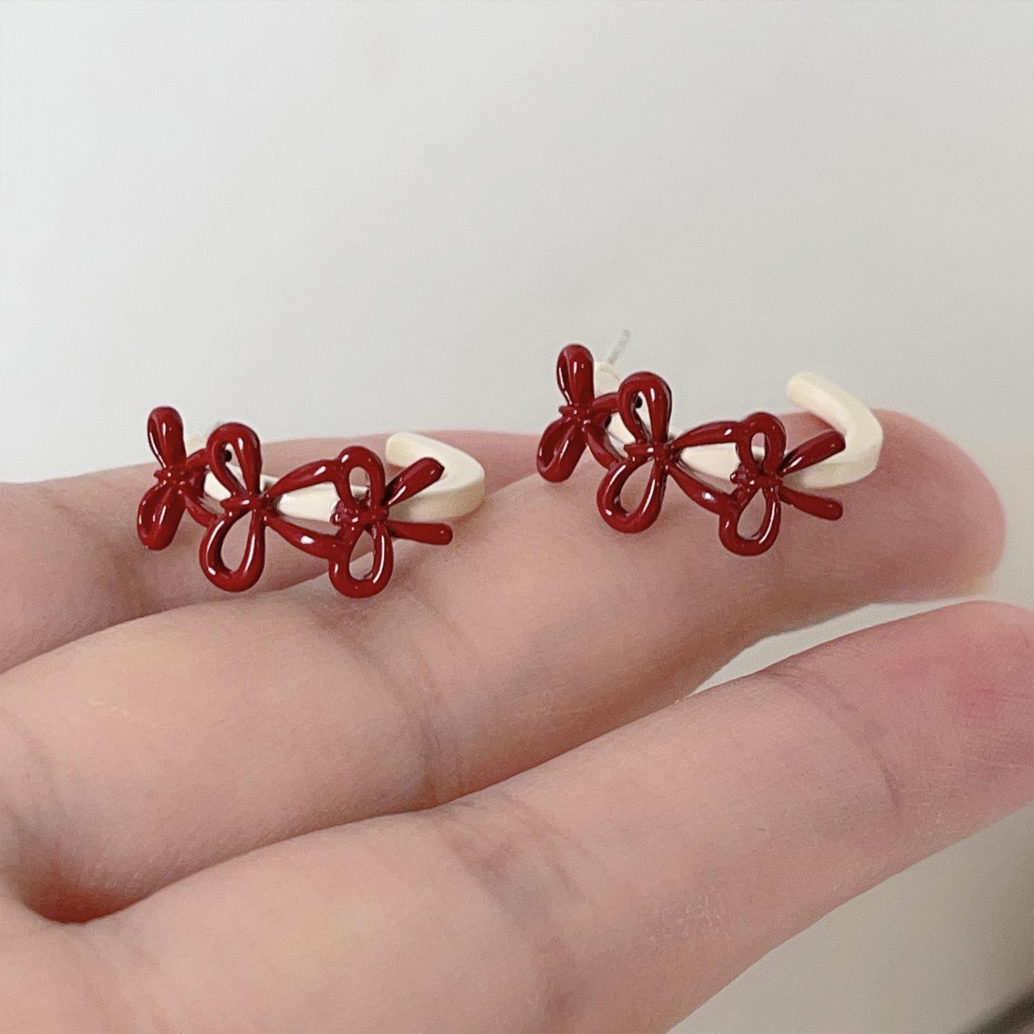 Pendientes de lazo rojo tridimensional para niña, elegantes y dulces, nuevos y exquisitos pendientes retro distintivos y avanzados.