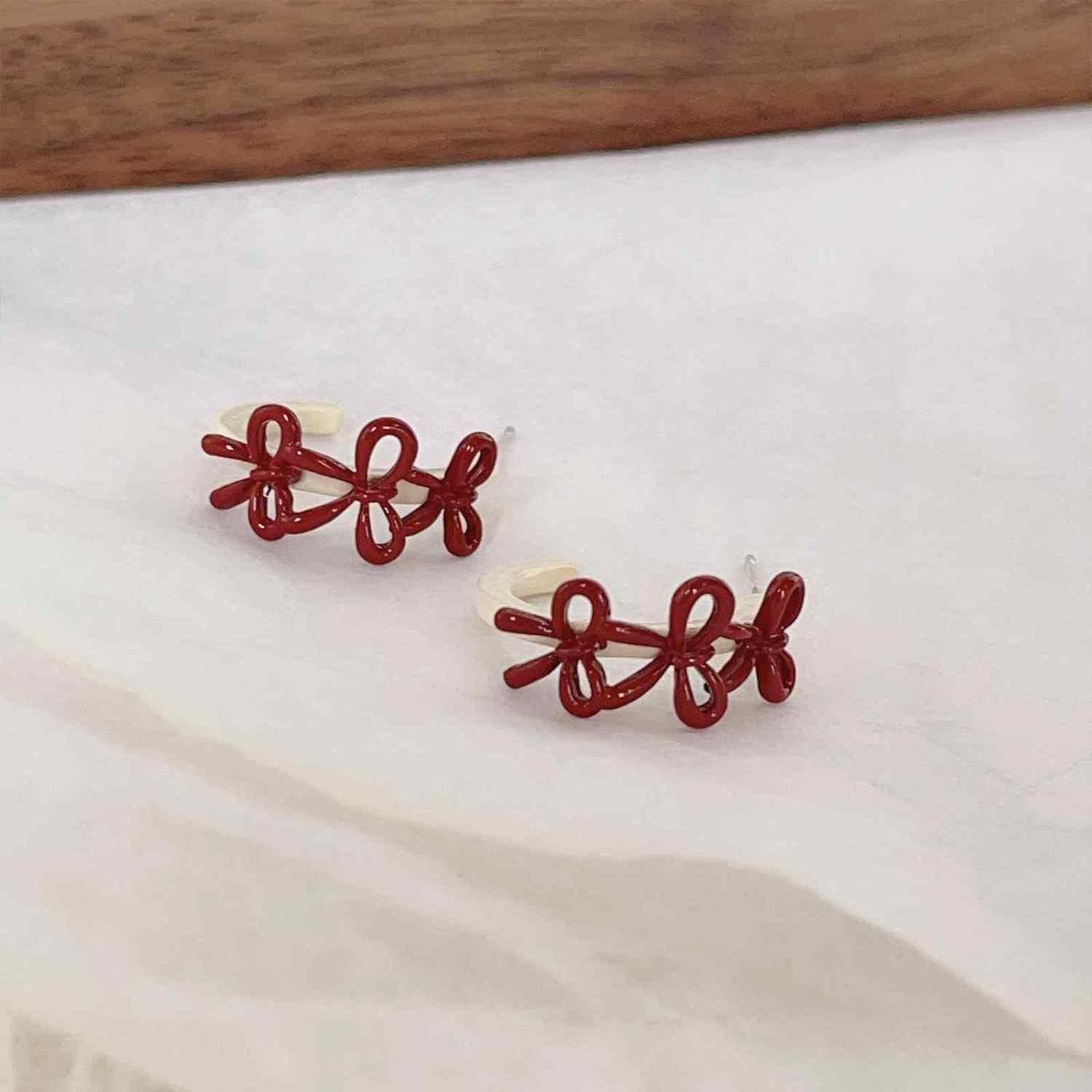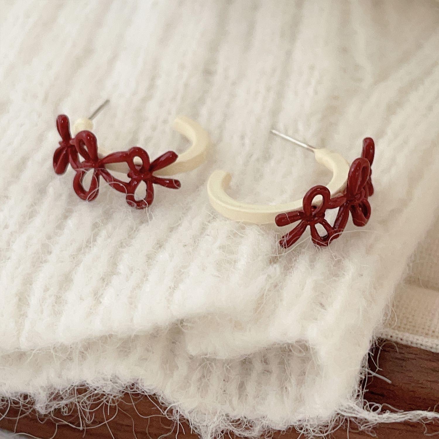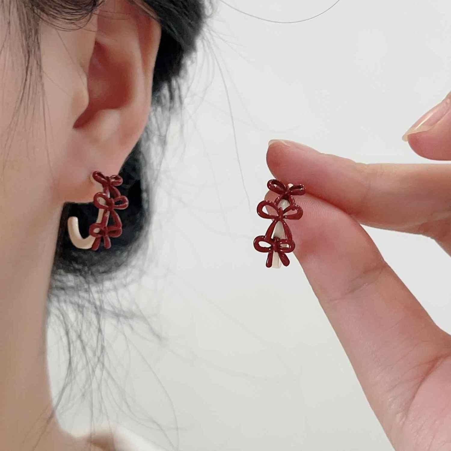 Pendientes de lazo rojo tridimensional para niña, elegantes y dulces, nuevos y exquisitos pendientes retro distintivos y avanzados.