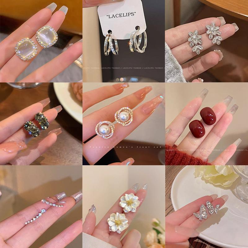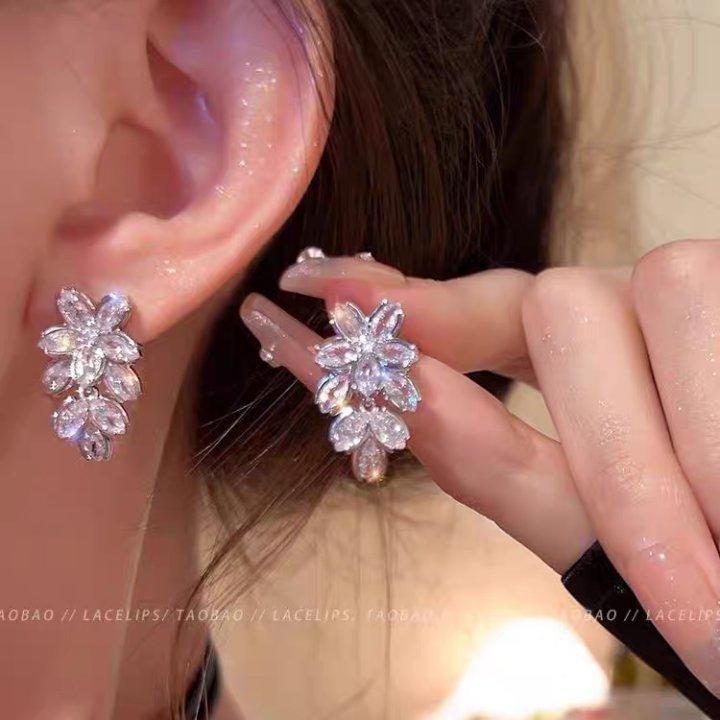 Gilt flowers-silver needle style, Brown-silver needle style, Water drop flower crystal-silver needle style, Si...